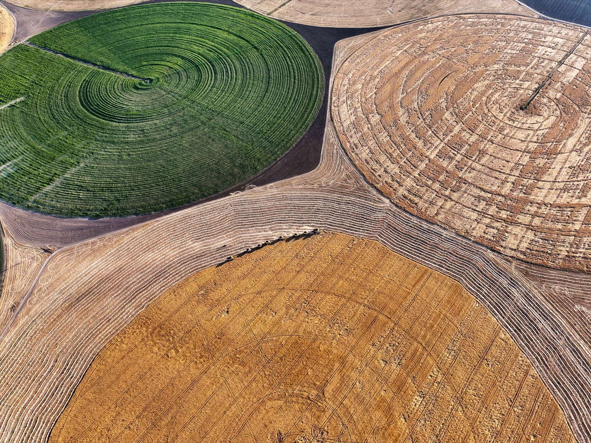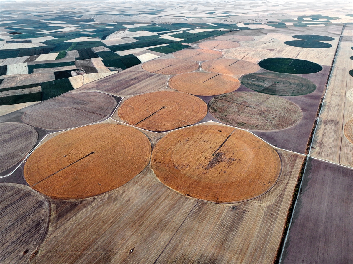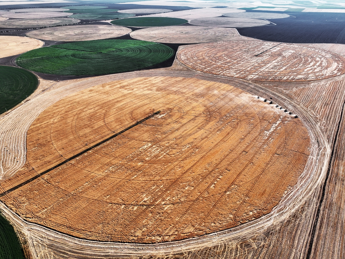 Konya'nın devasa dairesel tarlalarında hasat tamamlandı