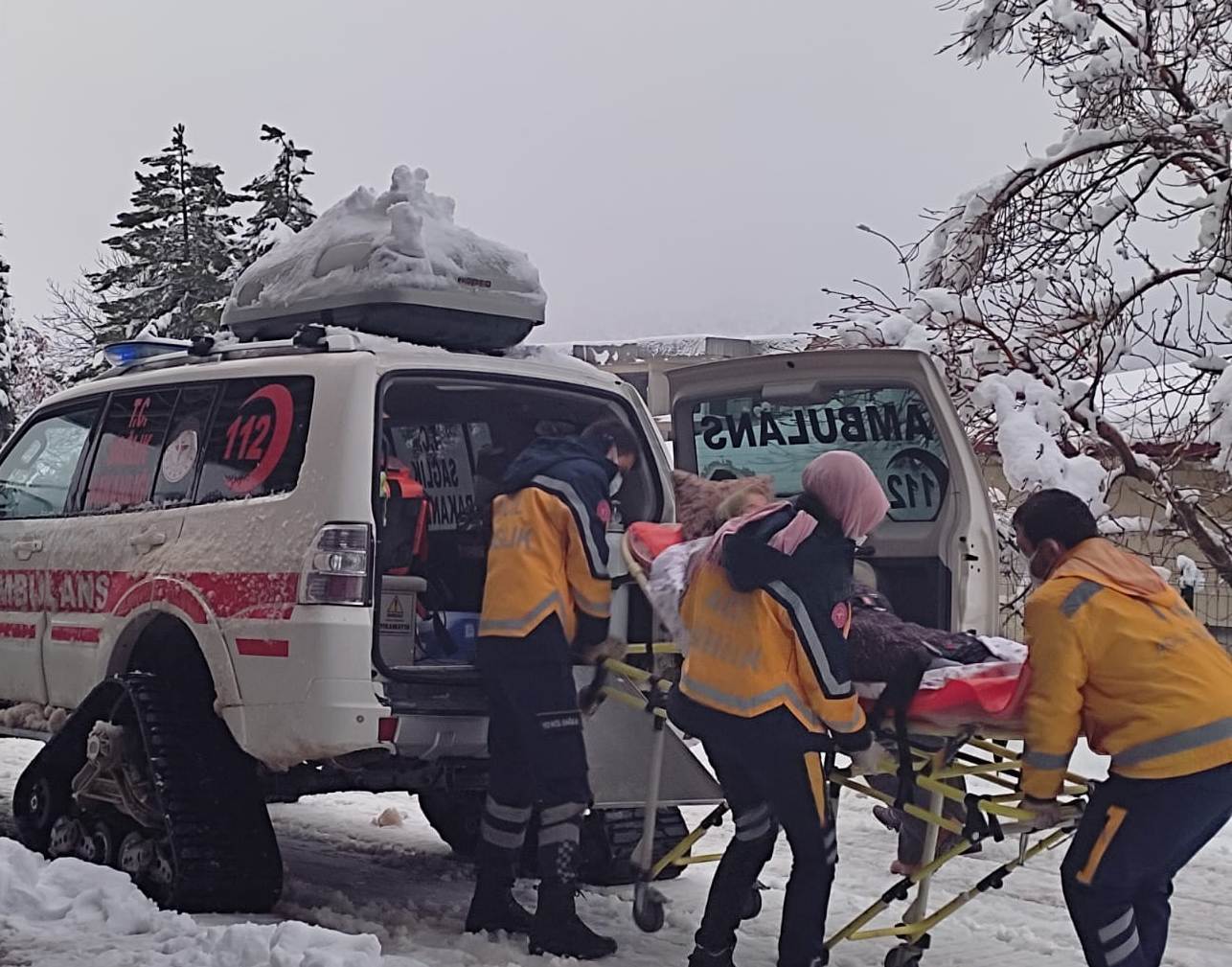 Kar kış demeden bütün imkanlarını seferber eden 112 Acil Sağlık ekimizi göstermiş oldukları çalışmadan dolayı kutlar, hastamıza acil şifalar dileriz.