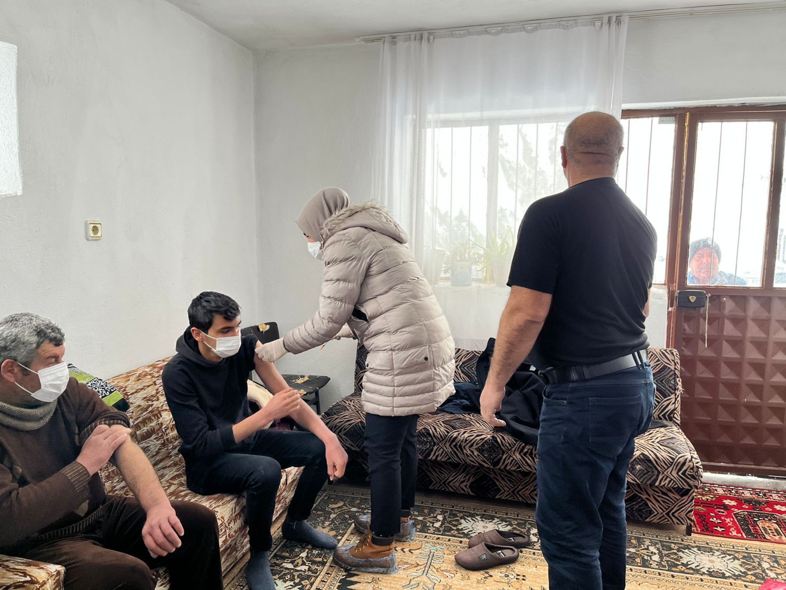 Gökhüyük Mahallesinde Aşı olan vatandaşlarda zorlu kış şartlarında görev yapan sağlık ekiplerine teşekkür etti.