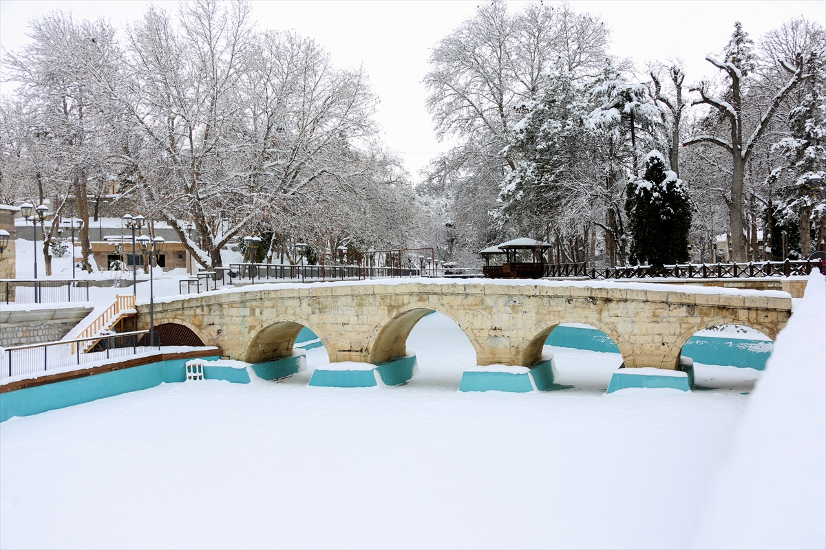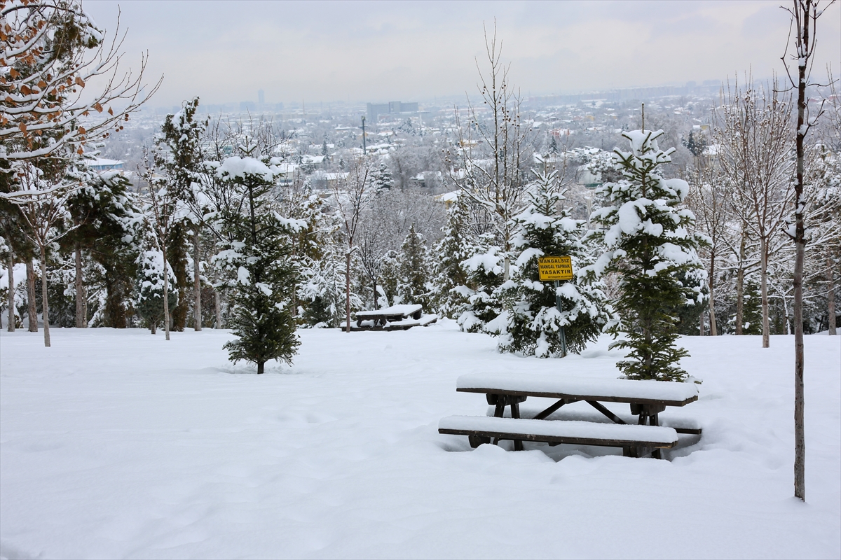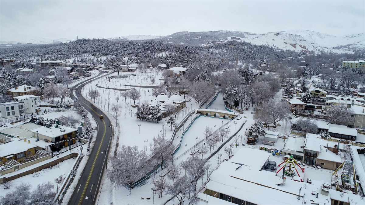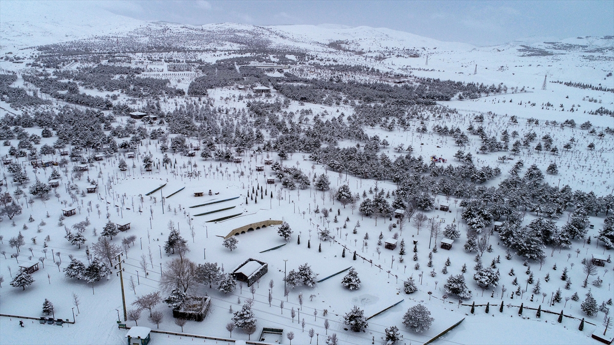 KONYA (AA) - Konya'da yeşil dokunun en fazla olduğu Meram ilçesi, kentte etkili olan kar yağışı sonrası beyaz örtüye büründü.