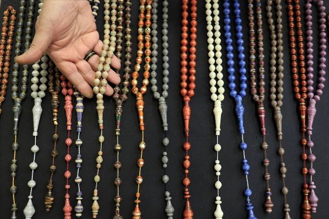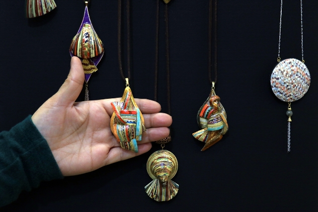 KONYA (AA) - SERHAT ÇETİNKAYA - Atık kağıtları kendi renk ve desenlerinden faydalanarak takı ve aksesuara dönüştüren Ali Rıza Kart, 'Teriha' adını verdiği sanatıyla 50 bine yakın yüzük, kolye, tespih, bileklik üretti.