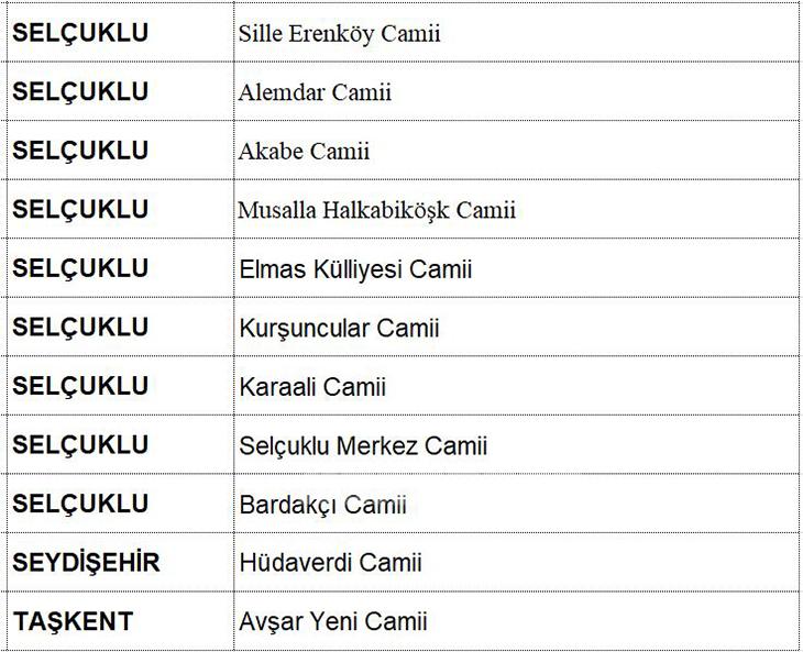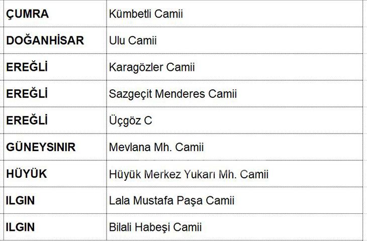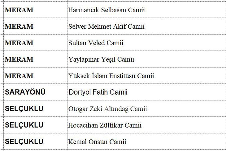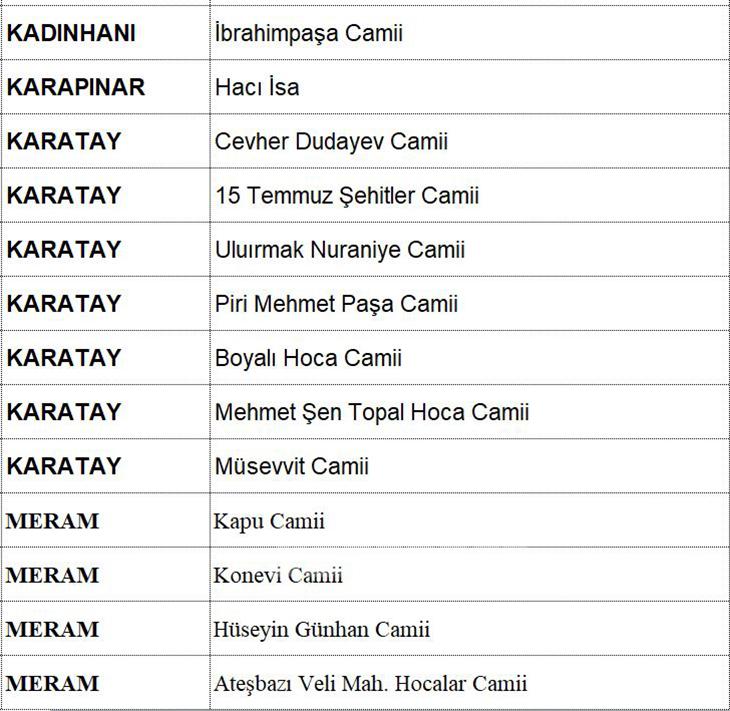 Konyada Hatimle Teravih kılınacak Camiler .