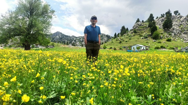 Yemyeşil yaylalarda açan sarı çiçekler, seyrine doyumsuz manzaralar oluşturdu.