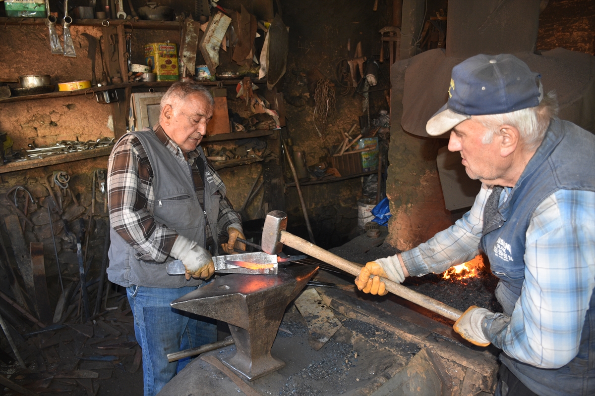 Yöredeki çiftçilerin ihtiyacına cevap vermek adına tarım aletleri yapan, yıprananları da tamir eden kardeşler, unutulmaya yüz tutmuş mesleklerini ilk günkü heyecanla sürdürüyor.