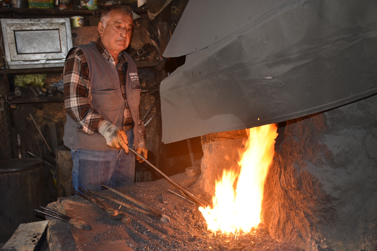 Kardeşiyle karşılıklı demir döven Tahsin Kaçar, AA muhabirine, alüminyum fabrikasından 30 yıl önce emekli olduktan sonra demirci ocağına döndüğünü söyledi.