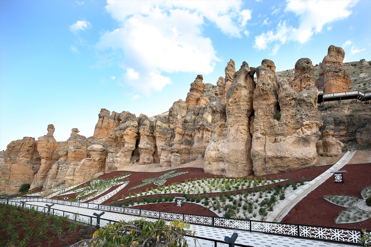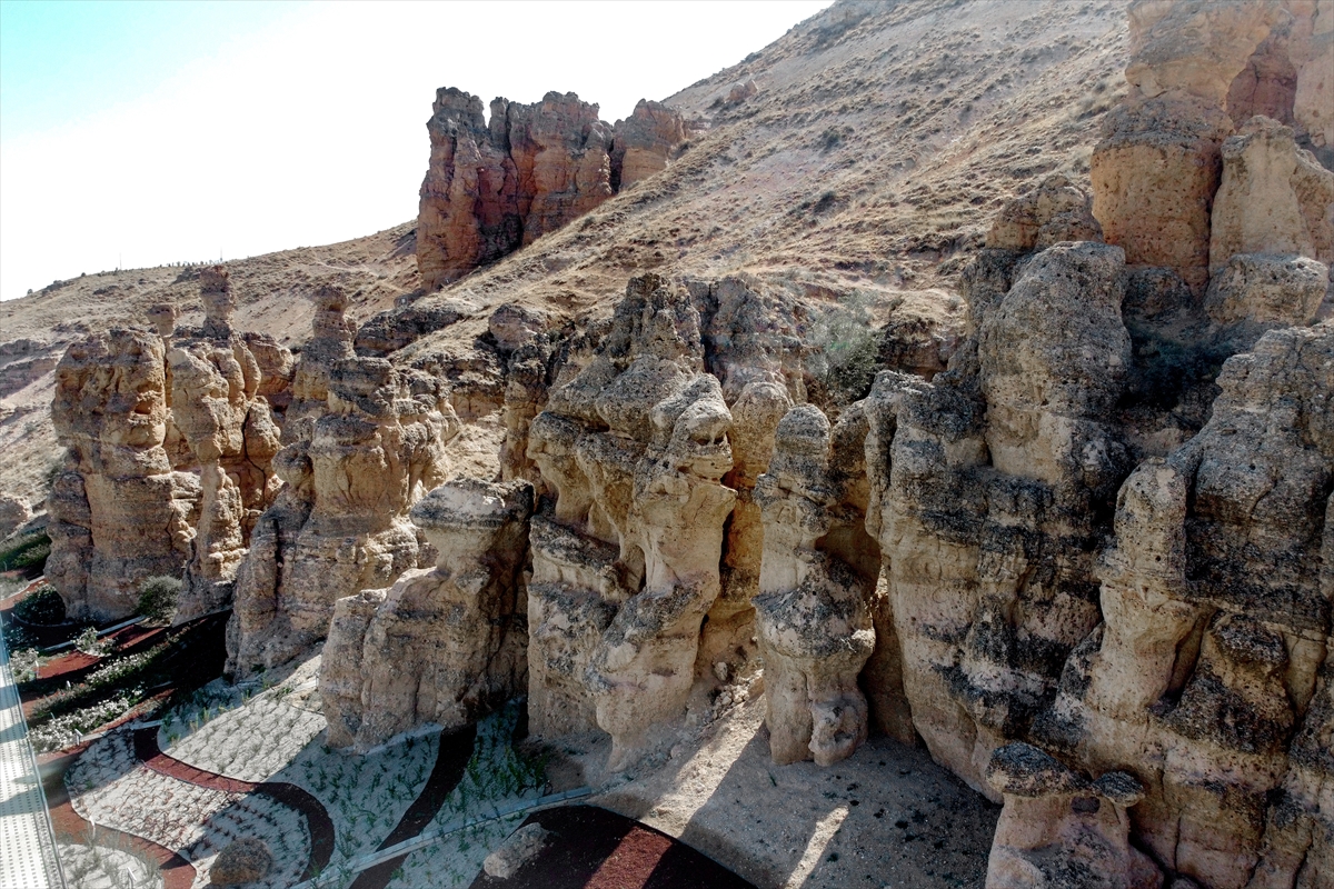 Konya'nın Meram ilçesinde rüzgar ve su erozyonuyla zamanla şekillenen Kızlar Kayası, çevre düzenlemesiyle kent turizmine katkı sağlayacak.