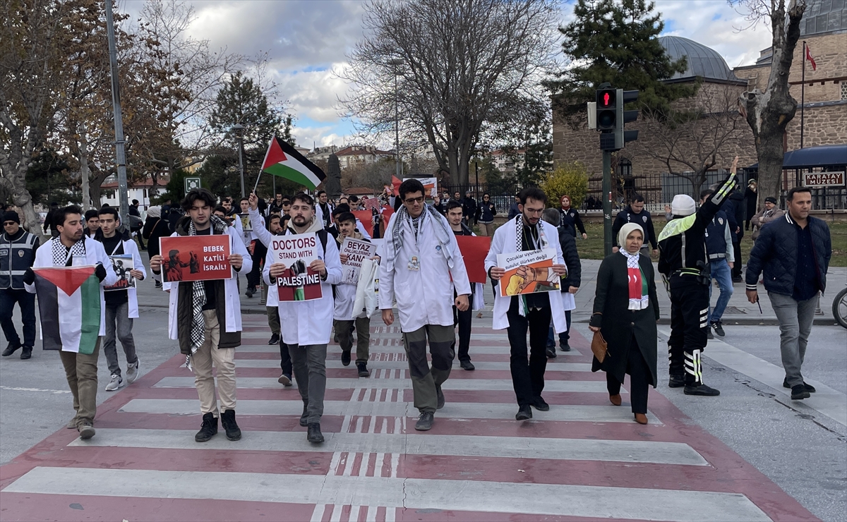 Konya'da hekimler, İsrail'in Gazze'ye yönelik saldırılarını protesto için "sessiz yürüyüş" gerçekleştirdi. Kentte hekimler ile tıp fakültesi öğrencilerinden oluşan grup, Kılıçarslan Meydanı'nda toplandı. Alaaddin Bulvarı'ndan Kayalı Park Meydanı'na kadar sessiz şekilde yürüyen grup, İsrail'i protesto etti.