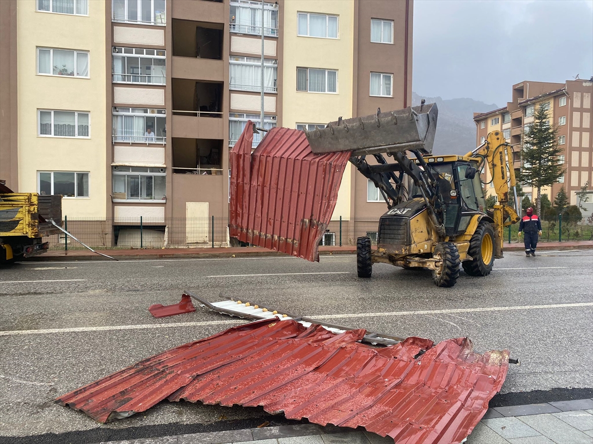 Saatteki hızı 110 kilometreyi bulan rüzgar nedeniyle Alaylar ve Pınarbaşı mahallelerinde bazı evlerin çatısı uçarken, çöp konteynırları yollara devrildi, ağaçların dalları kırıldı.