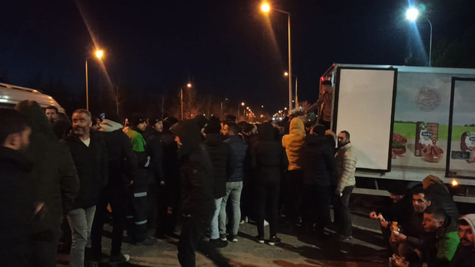 Geceyi Fabrika önünde geçiren yüzlerce işçi aynı kararlılıkla bu gecede bulundukları yerden ayrılmayarak hep bir ağızdan "Sadaka değil, hakkımızı istiyoruz" sloganlarıyla işveren tarafına çağrı yapmaya devam ediyor..
