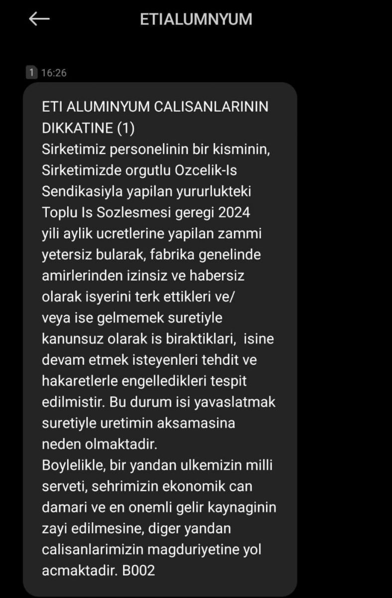 ETİ ALÜMİNYUM ÇALISANLARININ DİKKATİNE