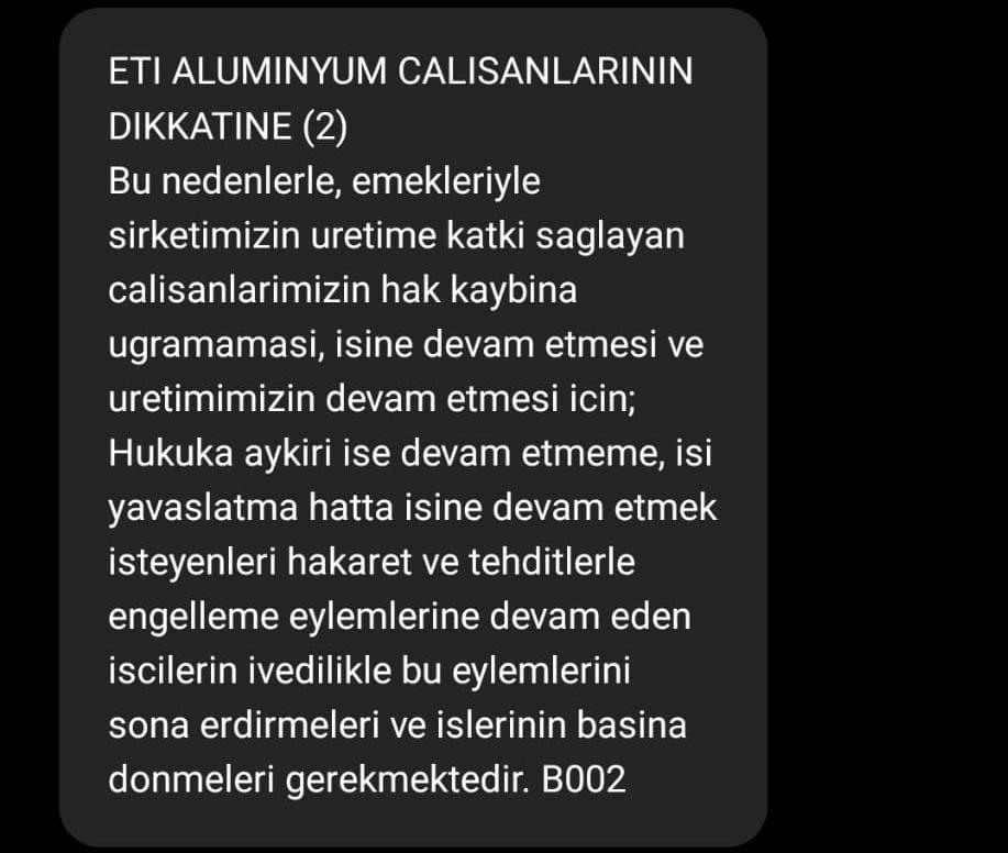 Bu açıklama, eyleme devam eden işçilerimizi eylemlerini sona erdirme çağrısı ve iş başına davet mahiyetindedir.''