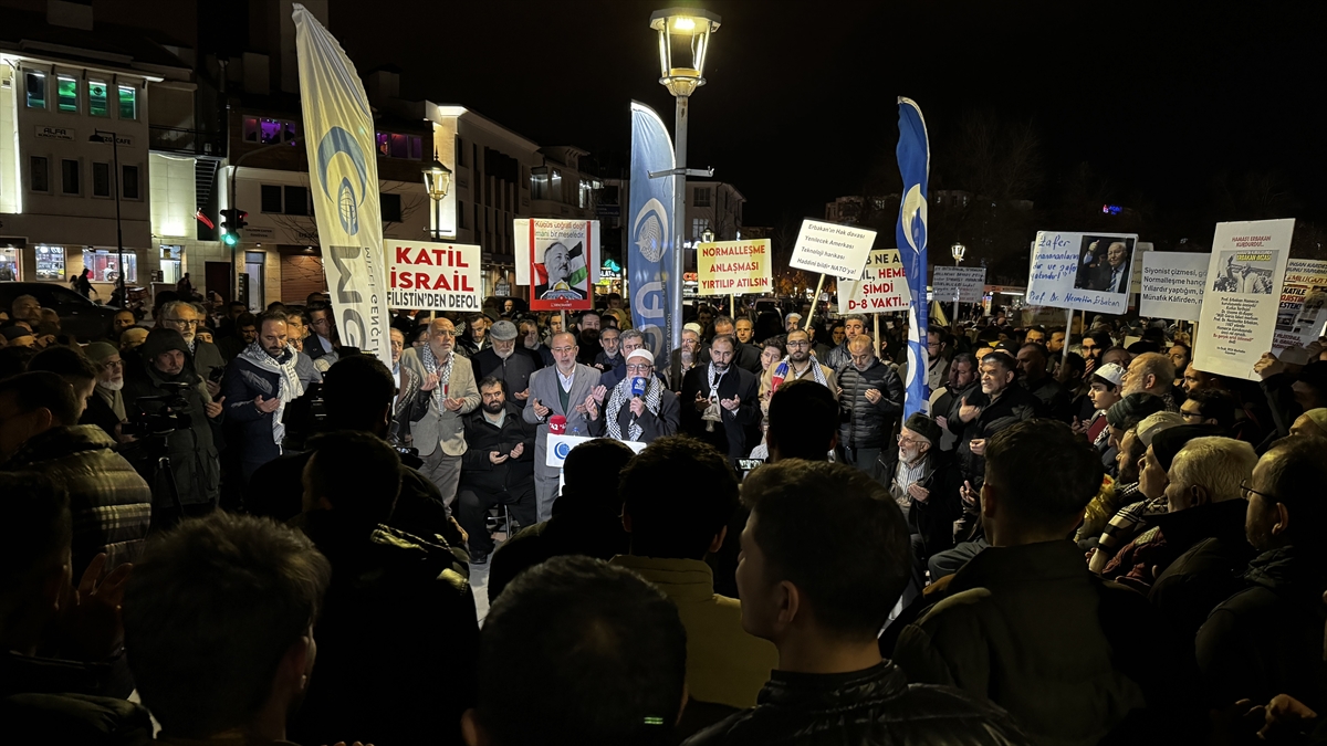Kültür Park'ta bir araya gelen AGD ve MGV üyeleri, "Zafer inananlarındır ve zafer yakındır", "Kudüs coğrafi değil imani bir meseledir" yazılı pankartlar açtı, Kur'an-ı Kerim okudu.