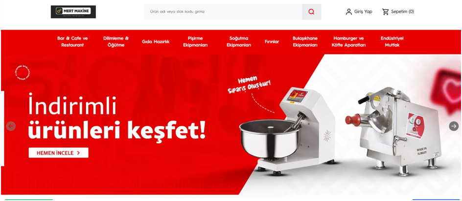 Profesyonel mutfak ekipmanlarına ihtiyaç duyan işletmeler için Mert Makine, Türkiye'nin önde gelen endüstriyel mutfak mağazası olarak hizmet vermektedir. Yüksek kaliteli kıyma makinesinden, hamur açma makinesi gibi tüm endüstriyel mutfak aletlerine kadar geniş ürün yelpazesine sahip olan Mert Makine, işletmelerin her türlü ihtiyacını karşılamakta ve mutfak işlemlerini kolaylaştırmaktadır. Türkiye'nin endüstriyel mutfak ekipmanları satış mağazası olan ve sektöründe öncü olan Mert Mutfak Aletleri ile tüm ihtiyaçlarınızı karşılayabilir, güvenilir ve kaliteli hizmetten faydalanabilirsiniz.