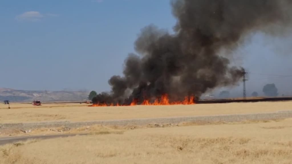 İlçede Yeni Altıntaş Mahallesi mevkisinde Bablı Keser ile Kemal Küpe'ye ait 50 dönüm hasada hazır makarnalık sert durum buğday tarlasında, henüz bilinmeyen nedenle yangın çıktı.