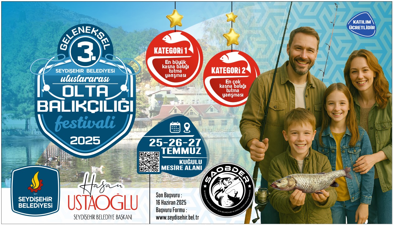 Seydişehir Belediyesi ile Seydişehir Amatör ve Sportif Olta Balıkçıları ve Doğal Hayatı Koruma Derneği (SAOBDER) işbirliğiyle Seydişehir'de Uluslararası 3. Olta Balıkçılığı Festivali, Tarım ve Orman Bakanlığı’ndan alınan izinler doğrultusunda bu yıl 25-26-27 Temmuz’da Kuğulu Tabiat Parkında düzenlenecek.