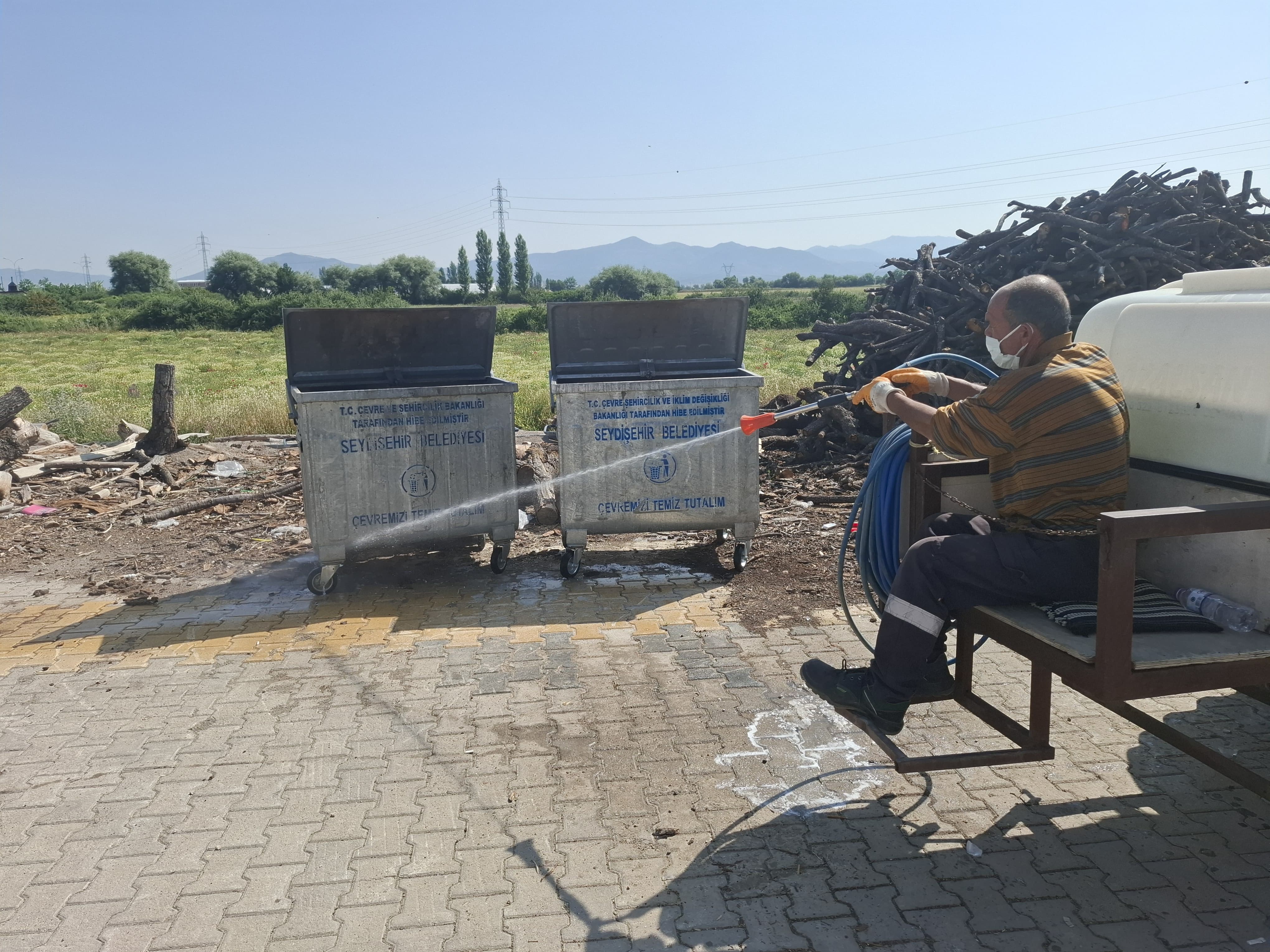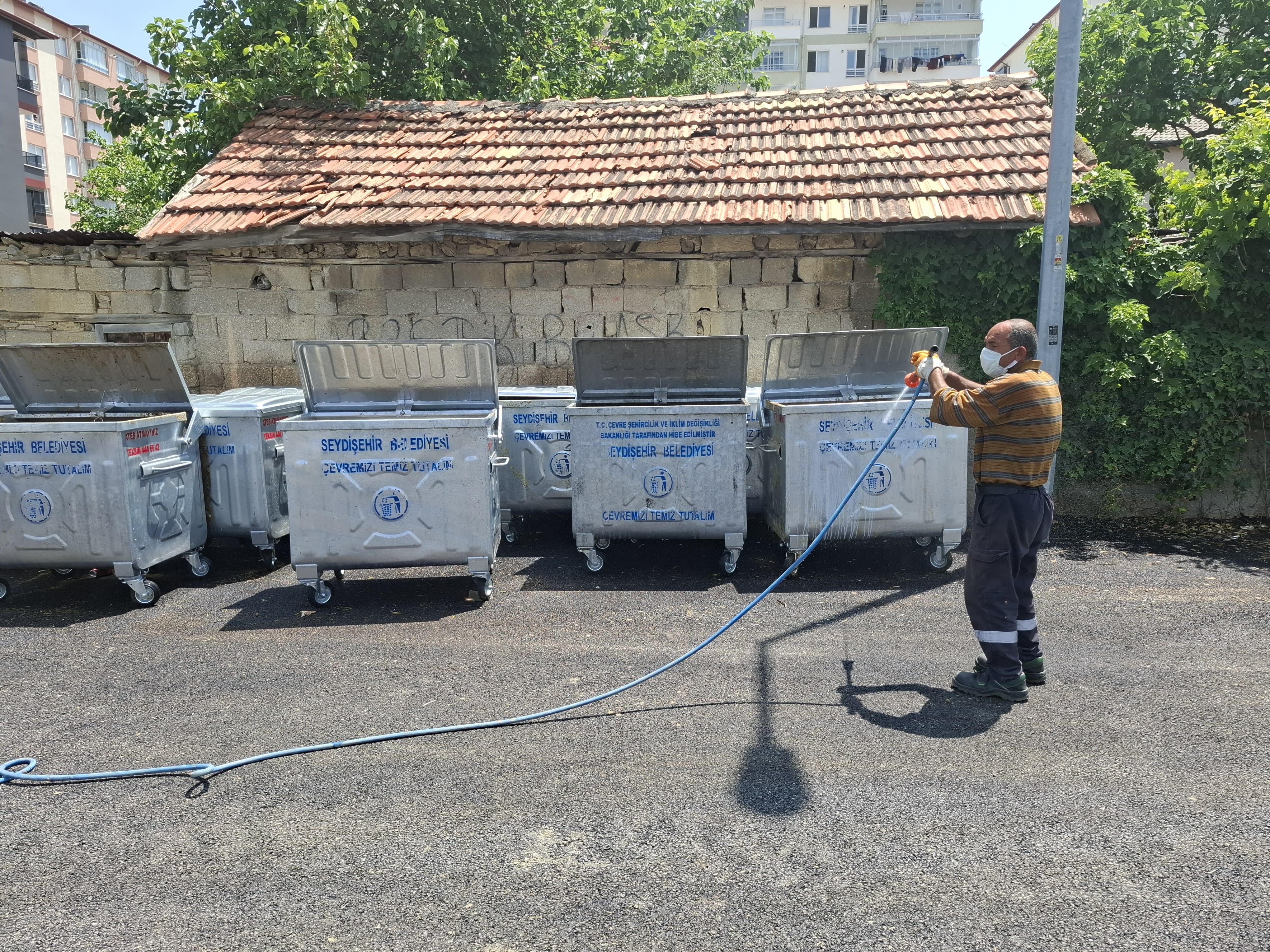 Seydişehir Belediyesi Temizlik İşleri Müdürlüğü ekipleri, Kurban Bayramı sonrası çöp konteynerlerinde oluşan kötü koku ve atıkların giderilmesi için başlattığı yıkama ve dezenfekte çalışmalarını sürdürüyor.