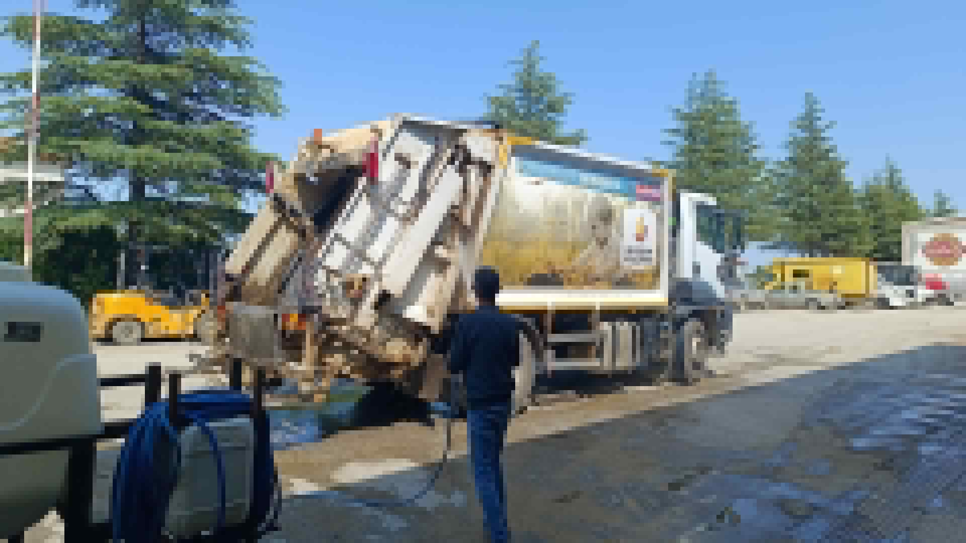 Temizlik İşleri Müdürlüğü ekipleri Kurban Bayramı sonrası çöplere atılan atıkların kötü kokuya ve çevre kirliliğine sebebiyet vermemesi için ilçe genelinde tüm mahallelerde bulunan konteynerleri yıkayarak, bakteri öldürücü ve koku giderici antibakteriyel ilaçlarla temizledi.
