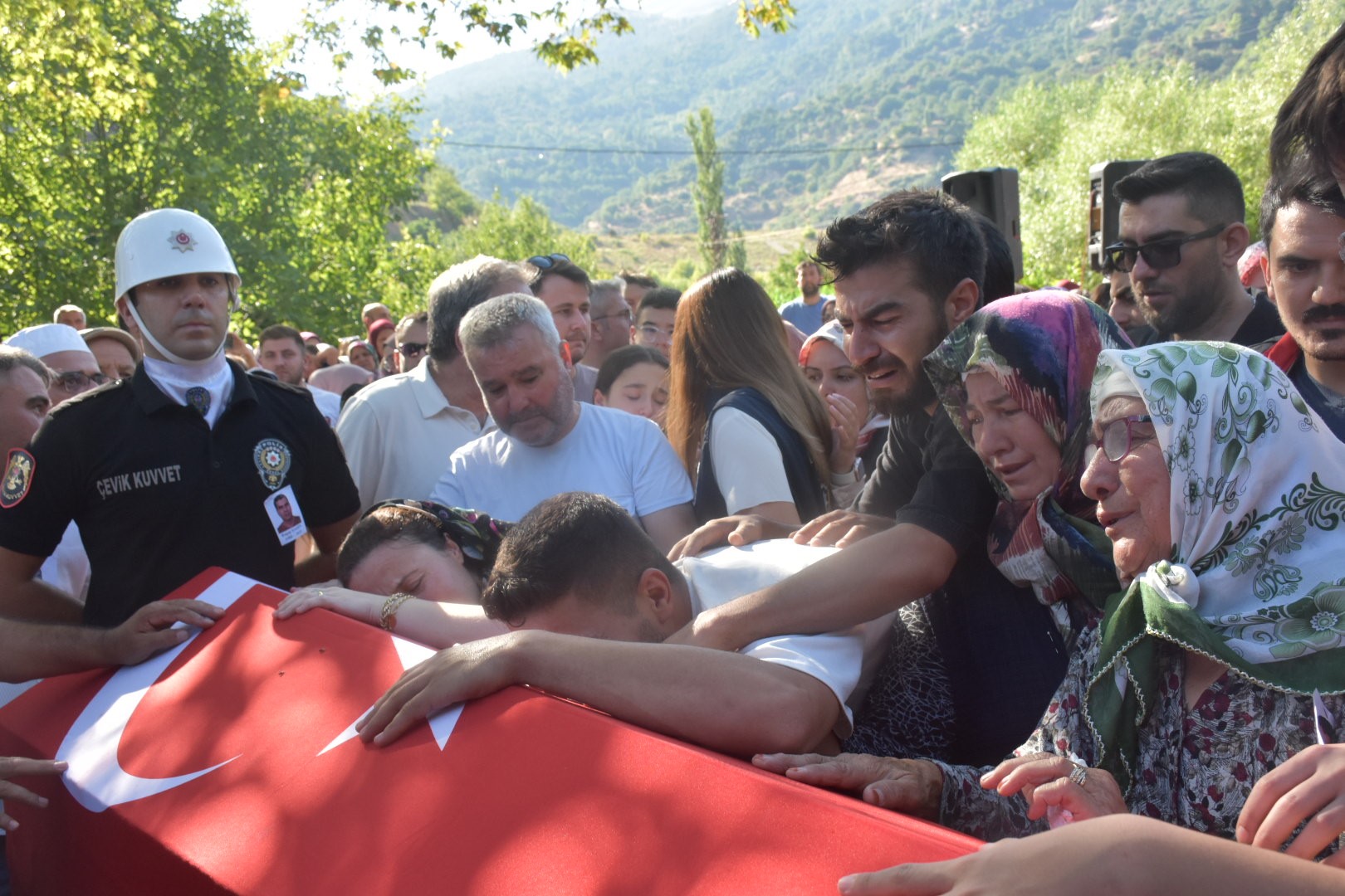 İzmir'in Ödemiş ilçesinde çıkan orman yangında şehit olan Beydağ Orman İşletme Şefliği'nde görevli şoför, evli ve 2 çocuk babası Ragıp Şahin (45) için Kiraz'ın Çatak Mahallesi'nde cenaze töreni düzenlendi. Törene Tarım ve Orman Bakanı İbrahim Yumaklı, İzmir Valisi Süleyman Elban, Şahin'in eşi Nazire Şahin, çocukları Emir Sahin, kızı Sude Şahin ile meslektaşları katıldı. Cenaze töreninde şehidin özgeçmişi okundu. Ardından dua okunup, cenaze namazı kılındı. Şehidin tabutuna sarılan yakınları gözyaşı döktü. Şahin’in cenazesi Çatak Mahallesi Mezarlığı'nda toprağa verildi. Törende Bakan Yumaklı, şehidin oğlu Emir Şahin'in elini bir an olsun bırakmadı.
