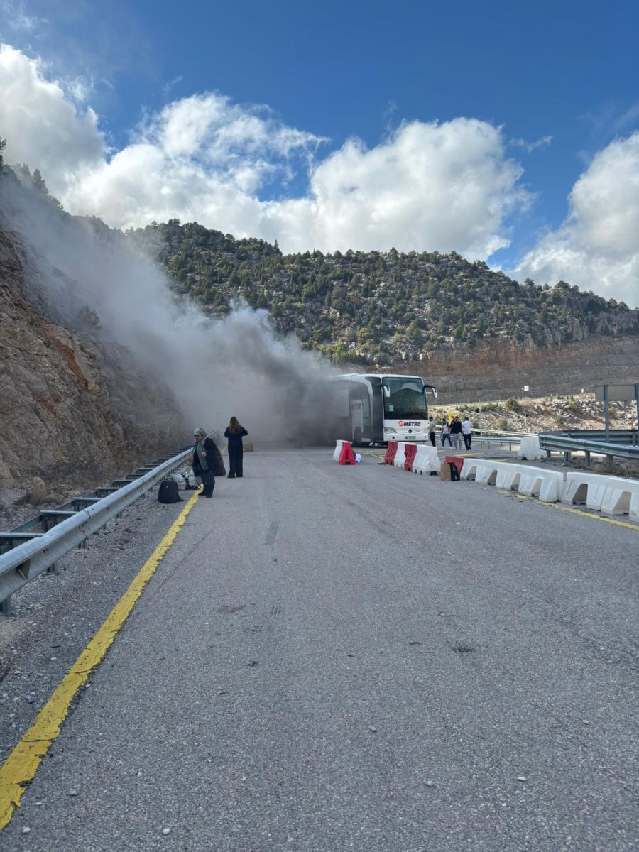 Konya'dan Antalya'ya giden S.S. idaresindeki 42 BEH 551 plakalı yolcu otobüsü, Seydişehir-Antalya kara yolunun 9. kilometresinde henüz belirlenemeyen nedenle yanmaya başladı.