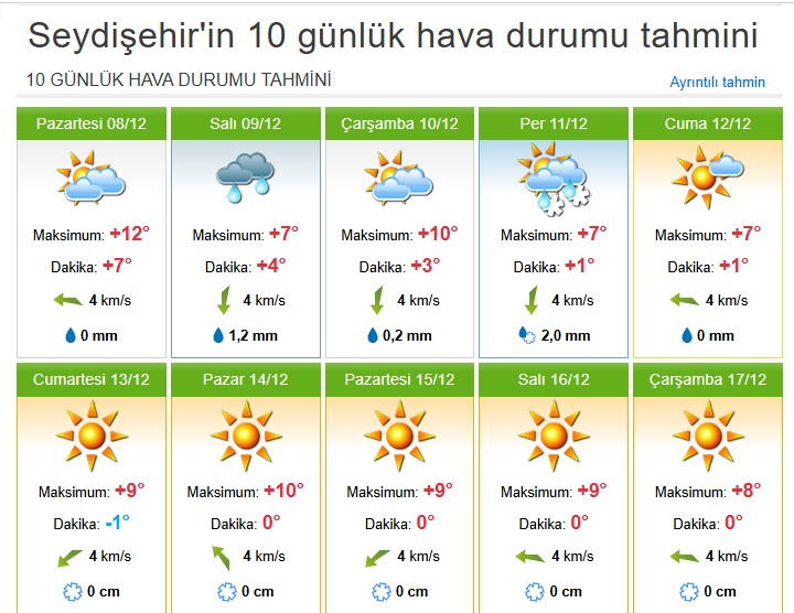 SEYDİŞEHİR İÇİN 10 GÜNLÜK HAVA DURUMU