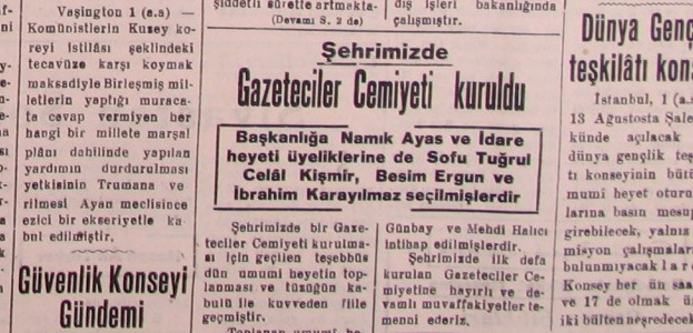 Konya Gazeteciler Cemiyeti, Anadolu’da kurulan ilk Gazeteciler Cemiyeti olması yönüyle önem arz eder. 1 Ağustos 1950 tarihinde, Konya’da yayınlanan Gazetelerin yönetici ve çalışanları ile Vilayette olup İstanbul Gazetelerinin temsilciliklerini yapan çok kıymetli isimler bir araya gelerek cemiyeti kurmuşlardı. Konya Gazeteciler Cemiyetinin ilk başkanı Akif Paşa İlkokulunda öğretmenlik yapan ve yıllarını Konya basın hayatına veren Namık Ayas’tır. Cemiyetinin kurucu üyeleri şöyledir: SuadAbanâzır(Avukat, Bedesten içi. Alâaddin Caddesi, No. 20 T.C. 1338), Namık Ayas (Öğretmen, İleri Gazetesi Sahibi, Meram, Selâm, No: 42 T.C. 1325), Sabit Günbay (Öğretmen, Gazialemşah Mah., No. 25. T.C. 1323), Feyzi Halıcı (Yüksek Kimya Mühendisi, İstanbul Cad. 77. T. C. 1340), Mehmet Önder (Tarihçi, Tarla Mah. Necati Bey Sk. No. 18 T. C. 1926), Fakih Özfakih (Avukat, Bedesten İçinde No: 6. T. C 1339), Ahmet Yavuz (Yenisabah, Zafer, Demokrat İzmir Gazeteleri Konya muhabiri, Larende Caddesi, No. 162 T. C. 1335). Cemiyetin Haysiyet Divanı üyeleri; Muhlis Koner, SamihAtademir, Halis Sungur idi.