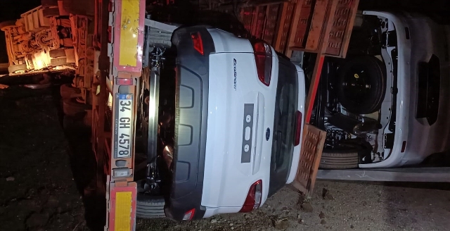 KONYA (AA) - Konya'nın Kulu ilçesinde bir tırın devrilmesi sonucu hem bu araçta hem de dorseden düşen sıfır kilometre 9 hafif ticari araçta hasar oluştu.