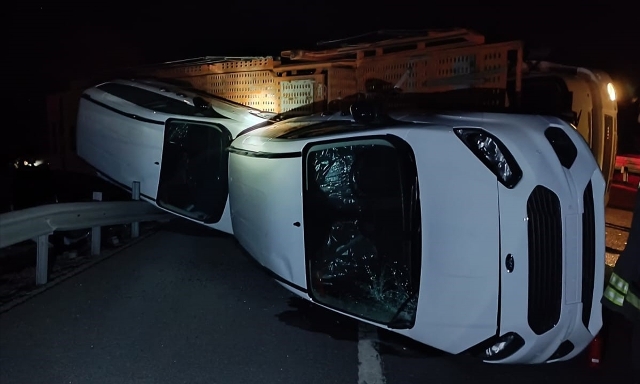 Tırda bulunan sıfır kilometre hafif ticari araçlarda zarar meydana gelirken, Ankara-Konya kara yolunda ulaşım bir süre kontrollü sağlandı.