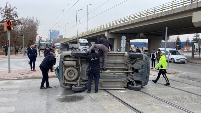 Konya’da tramvay hattında meydana gelen trafik kazasından dolayı seferler durdu. Otomobiller kaldırıldıktan sonra seferler yeniden devam edecek.