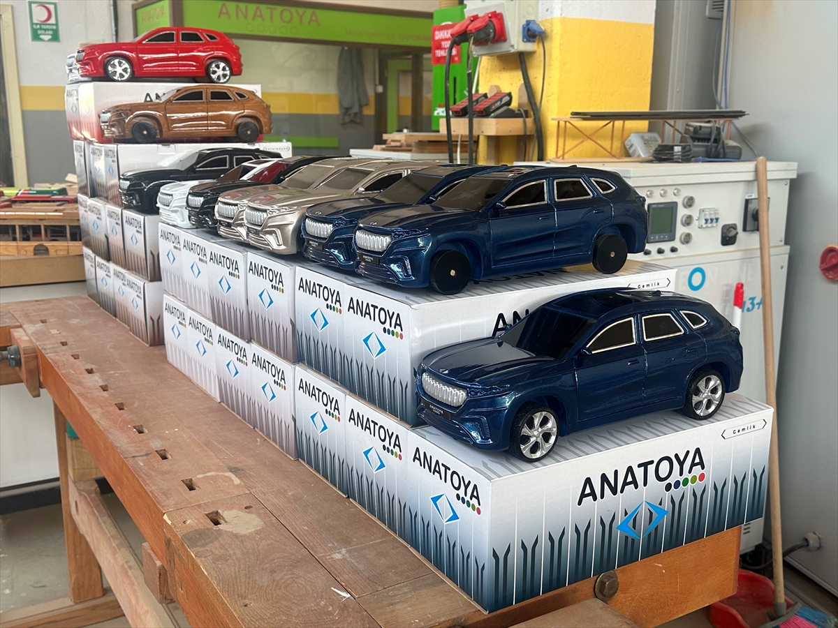 Atölyenin yapboz, tren, araba, uçak, at, topaç, bulmaca gibi oyuncak yelpazesine Türkiye'nin yerli otomobili Togg da eklendi.