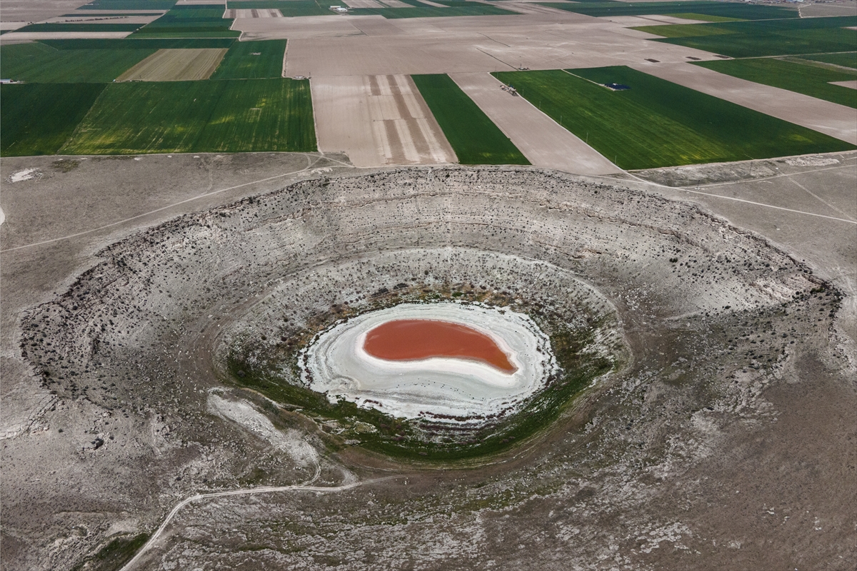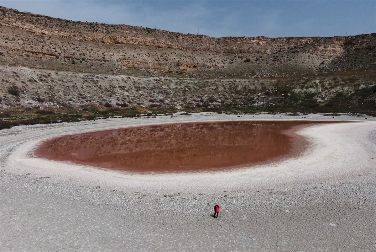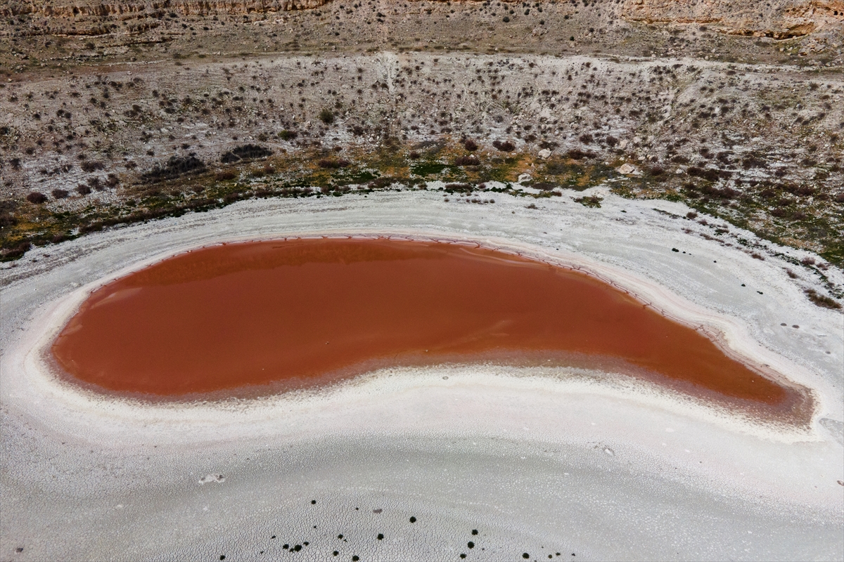 Konya’nın Karapınar ilçesinde bulunan Meyil Obruk Gölü, sıcakların artması ve su seviyesinin azalması nedeniyle içerisinde bulunan bakteriler sonucunda kızıl renge büründü. Karstik bir yapıya sahip olan göl, sudaki tuz oranının artması nedeniyle çoğalan bakterilerin oluşturduğu kızıl renk ile görenlerin ilgisini çekiyor.
