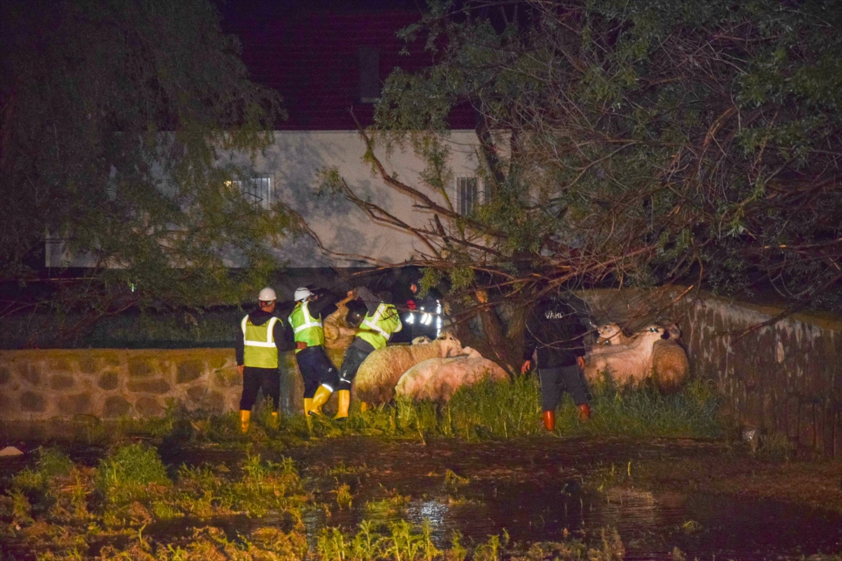 İtfaiye ekipleri, mahsur kalan vatandaşları ve küçükbaşları kurtararak, tahliye çalışması başlattı.