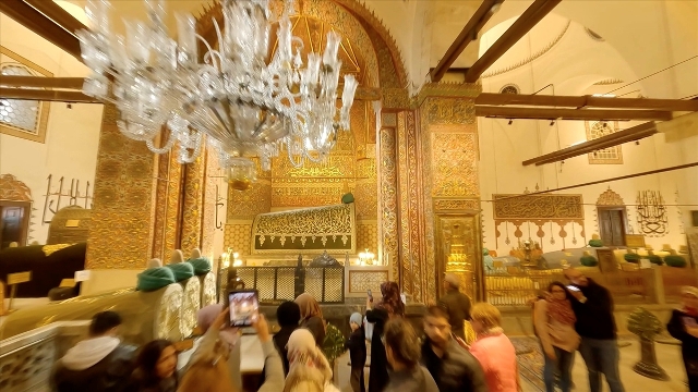 Konya'nın merkez Karatay ilçesinde yer alan Mevlana Müzesi'nin görüntüleri FPV dronla kaydedildi. Mevlana Celaleddin-i Rumi'nin 17 Aralık 1273'te vefatının ardından yaptırılan türbesi günümüzde de milyonların buluşma noktası olmaya devam ediyor. Hazreti Mevlana'nın sandukasının yer aldığı bölüm ise kalem işi süslemeler, nakış, bezeme ve hatlardan oluşuyor. Kanuni Sultan Süleyman'ın yaptırdığı mermerden sandukanın üstünde, altın ve ipekten dokunmuş, hat süslemeleri, Ayetel Kürsi, peygamber isimleri, Fatiha Suresi'nin yazılı olduğu örtü bulunuyor.