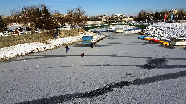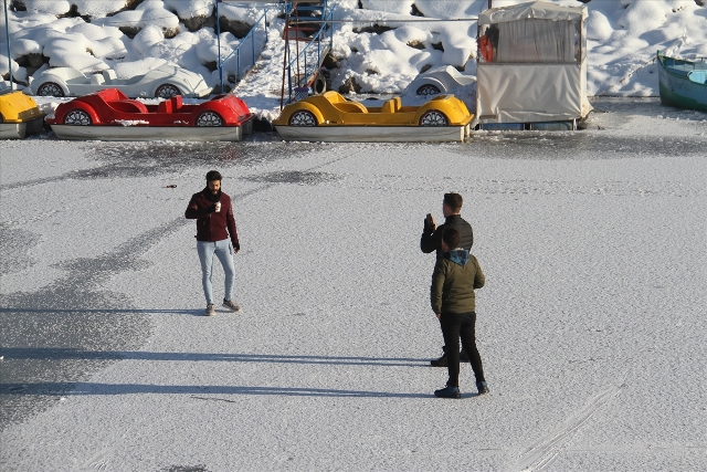 Bazı gençlerin göl üzerindeki buz tabakasının üzerine inerek burada kayarken özçekim yapmaları nedeniyle Vuslat Parkı'nda görev yapan zabıta ekipleri zaman zaman geldikleri sahilde buz üzerinde yürüyenleri uyararak alandan uzaklaştırıyor.