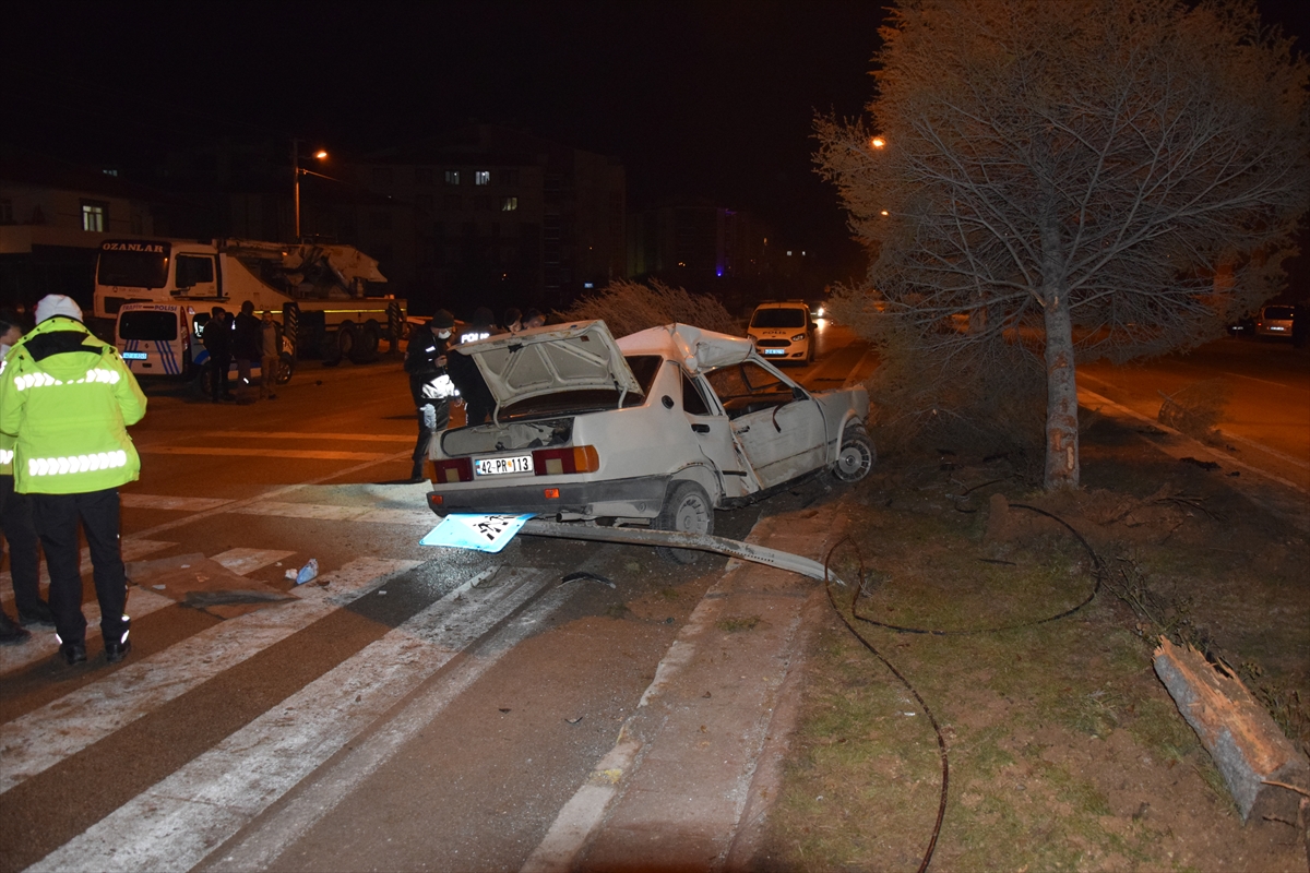 İlçe merkezi Konya-Ankara kara yolu üzerinde Abbas Eken idaresindeki 42 PR 113 plakalı otomobil, olumsuz hava koşulları nedeniyle kayganlaşan yolda kontrolden çıkarak refüjdeki ağaca çarparak karşı şeride geçti.