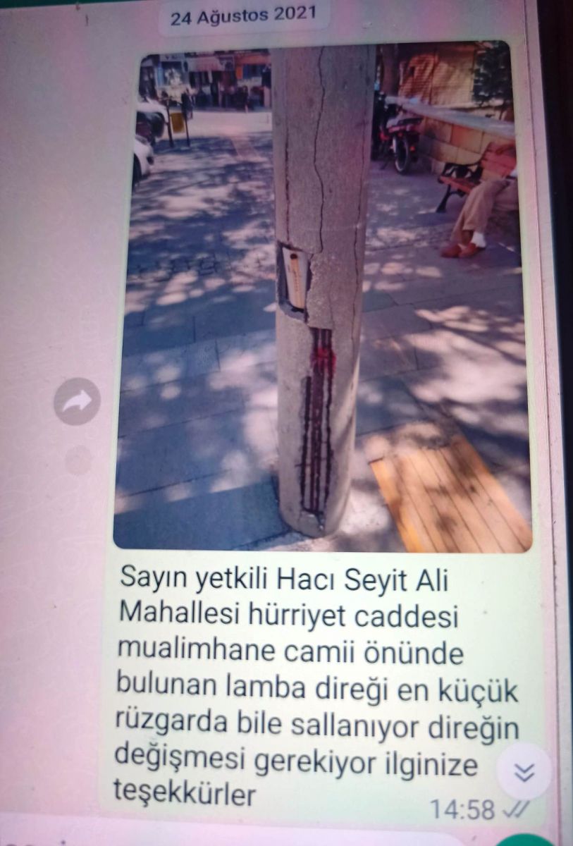 Diregin yıkıldığı anda Caddenin ve Kaldırımın boş olması olası faciayı önledi. Hacıseyit Ali Mahallesi Muhtarı Hakan Avcu Seydisehirhabere yaptıgı açıklmada "Caddede bulunan Tüm aydınlatma direklerinin çürük her an yıkılabilecek poziyonda oldugunu ifade ederek yıkılan direğin ivedilikle değiştirilmesi için Ağustos ayında Medaş yetkililerine müracat ettiğini yetkililerin konuya el atmasını istediğini ifade etti."