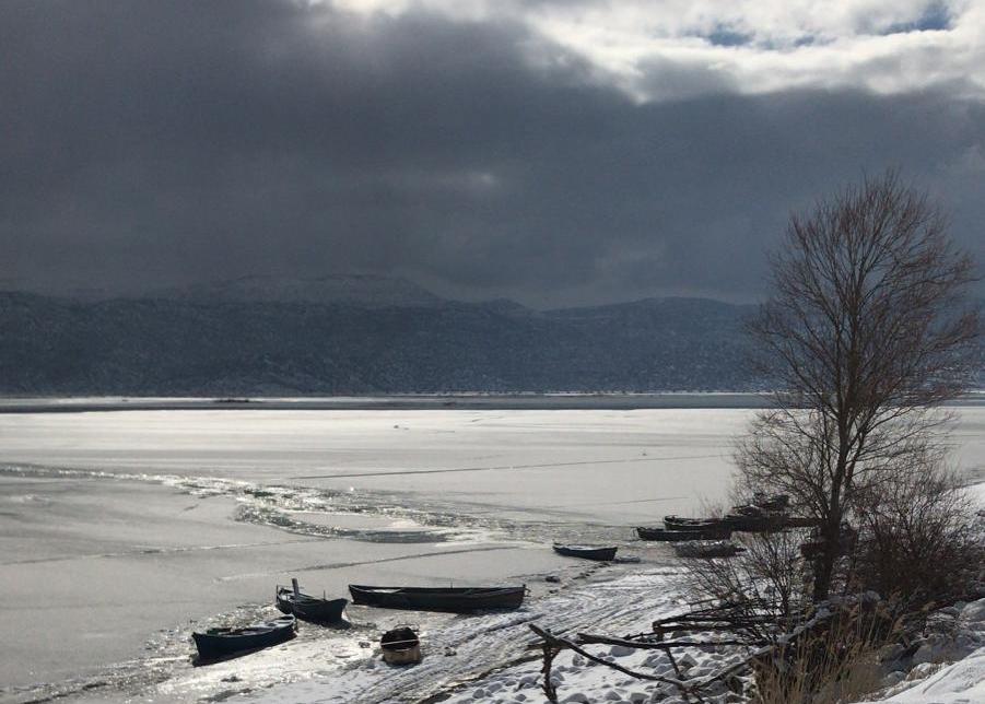 Hava sıcaklığının gece sıfırın altında 17 dereceye kadar düştüğü Seydişehir’de 60 bin metrekare alana sahip gölü buz tabakası kapladı. Aşırı soğuklar nedeniyle göl üzerinde üzere gölün kenar kısımlarından başlayarak buz tabakası oluştu.