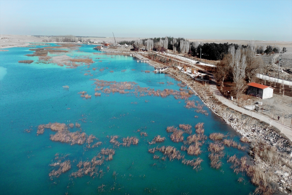 Kuraklığın ağır etkilerine rağmen tabanındaki kaynakları sayesinde su seviyesi dört mevsim değişmeyen Sarayönü ilçesindeki göl, dereyi andıran görünümünden kurtarılarak eski alanına ve su potansiyeline kavuştu.