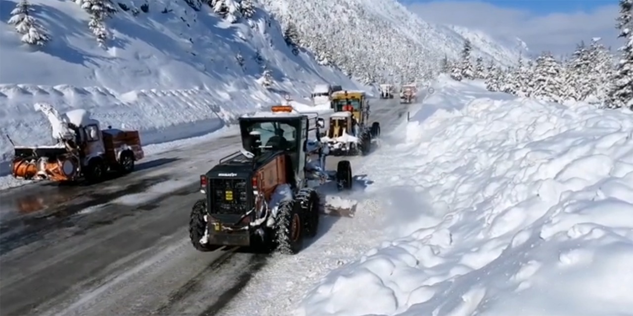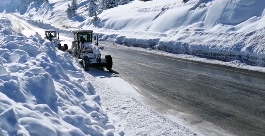 Yaklaşık 3 metrelik kar kütleleri 800 metrelik karayolunu tamamen kapladı Karayolları ekiplerinin gece boyunca yoğun çalışması sonucunda çığ bölgesi temizlenerek yol tekrar trafiğe açıldı