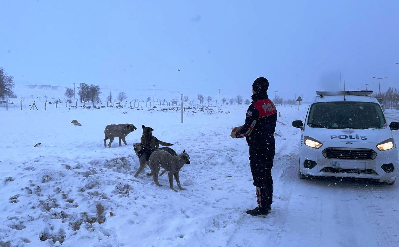 Hafta başından itibaren ülke genelinde etkisini gösteren kar yağışları Konya'da da devam ediyor. Yağışların olumsuz koşullarını en aza indirmek için çalışan Konya Emniyet Müdürlüğü Ekipleri, hem Konyalı vatandaşları hem de sokak hayvanlarını yalnız bırakmıyor.