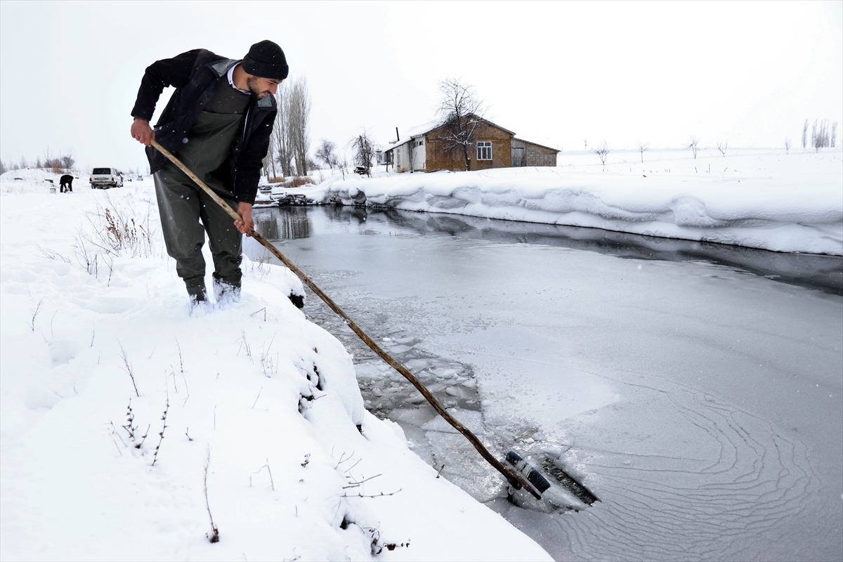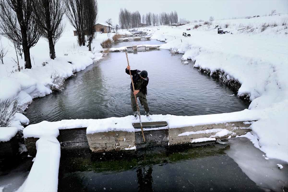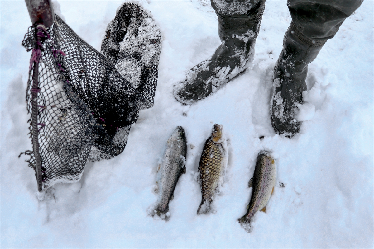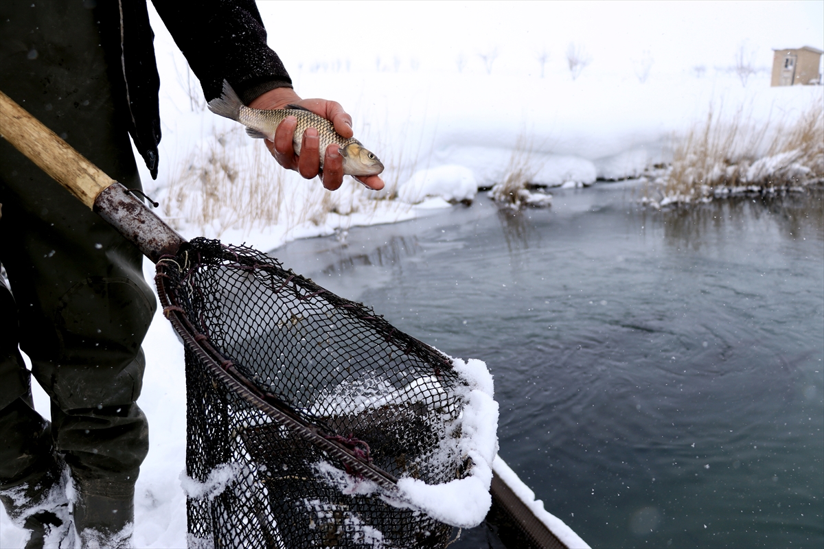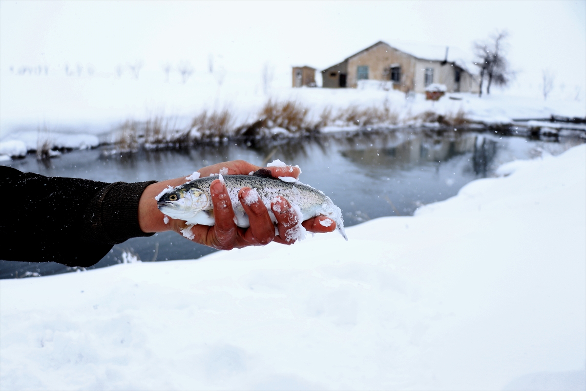 Tanrıöver, işlerinin meşakkatli olduğunu ifade ederek, "Aşırı soğuklarda balık yem yemiyor. Suyun yüzü donduğu için yem atamadığımız zamanlar oluyor. Balığın büyümesi de gecikiyor. Kar yağdı, bereket iyi oldu. Varsın bir ay sonra olsun balığımız. Önemli olan rahmet." dedi.