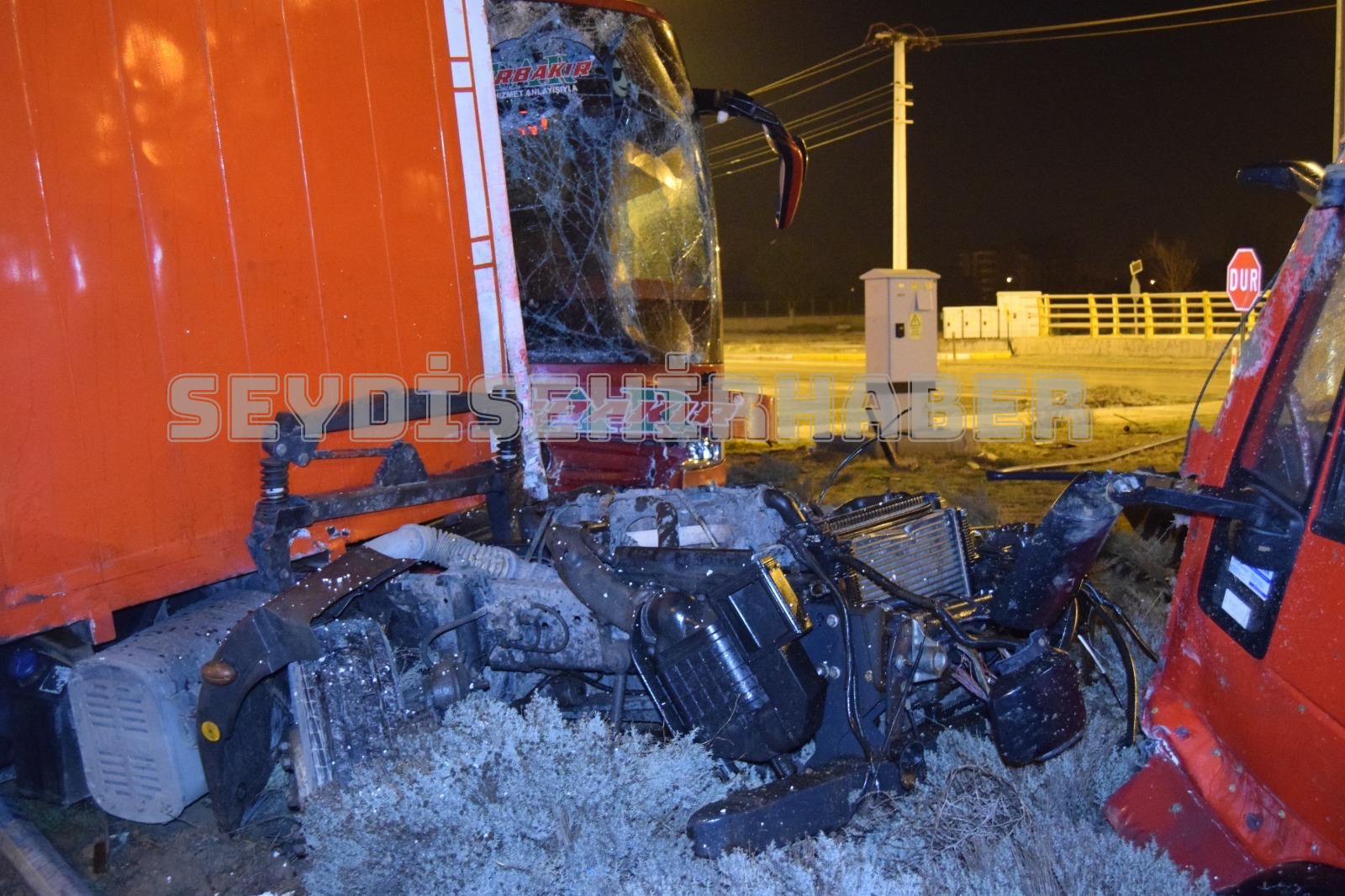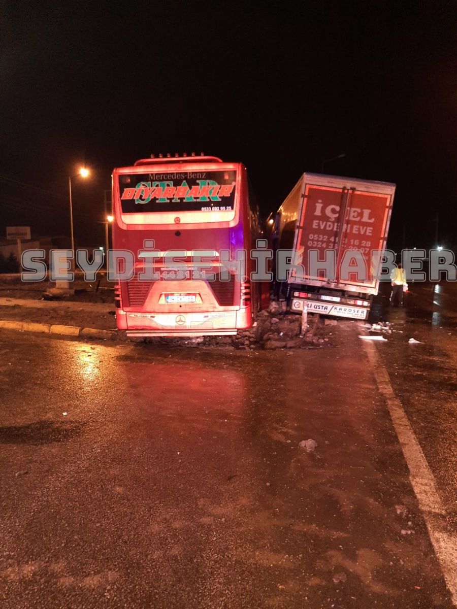 Hüseyin Şahin idaresindeki 34 DVT 88 plakalı yolcu otobüsü, kavşakta Cahit Erdoğmuş yönetimindeki 33 CUB 99 plakalı TIR ile çarpıştı.