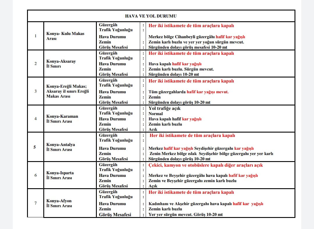 Konya-Beyşehir yolu sadece otobüs ve çekicilere açık.