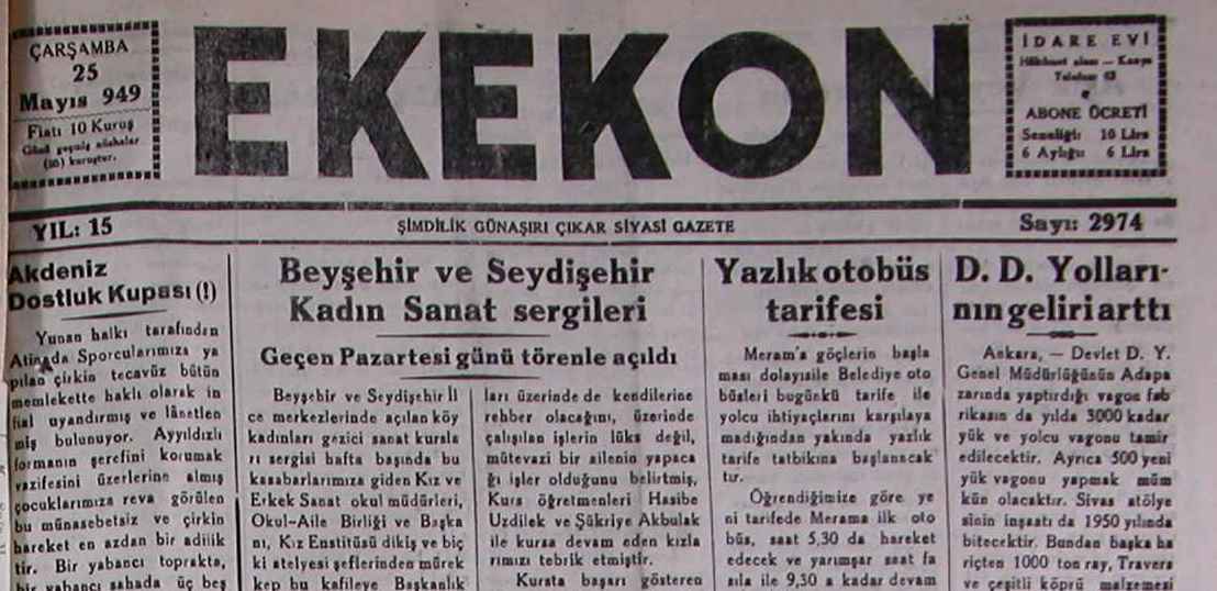 23 Mart 1950 günü Amerikan Haberler Bürosuna mensup Hayri Tunçbil ve Haluk Ertuğrul adlı şahısların yönetiminde Seydişehir Halkevi Salonunda, Seydişehirlilere ve öğrencilere kültür filmleri gösterimi yapılmıştı. Ekipler 24 Mart günü diğer ilçelerde de gösterim yapmak üzere kentten ayrılmışlardı. Aynı günlerde Eskişehir’de meydana gelen sel felaketine Seydişehirliler de kayıtsız kalmamışlardı. Kaymakam Alaattin Özkiper Başkanlığında yapılan toplantı ile İlçede bir yardım heyeti oluşturulmuştu. Yardımları kabule başlayan heyeti etkileyen gelişmelerden birisi şüphesiz Merkez İlkokulu öğretmen ve öğrencileri arasında toplanan 65 Liralık meblağın komisyona teslimi oldu.1949 yılı Mayısında Seydişehir kent merkezindeki büyük bir evin dört odasında düzenlenmiş olan Köy Kadınları Gezici Sanat Kursları Sergisi de Halkevinin organizesiyle yapılmıştı. Süslenen sergi binasına kentin mülki ve askeri erkânı en başta iştirak etmişti. Seydişehirli 39 genç kıza kurs belgeleri takdim edilmişti. Sergide çantalar, kutular, erkek gömlekleri, yastıklar, mutfak takımları, pijamalar, tayyör ve mantolar halk tarafından beğeniyle incelenmişti. Genç kızların bu suretle hem kent merkezinde hem de köylerdeki giyim ve sanat zevki konularında topluma öncülük edeceği aşikâr olmuştu. Amerikan bezlerinin çeşitli renklere boyanmış örnekleri de merak uyandırmıştı.Cumhuriyet Utku’sunun Türk Ocaklarından sonraki en önemli sivil toplum hareketlerinden biri olan Halkevlerinin yurt genelindeki pek çok alanda gerçekleştirdiği çağdaşlaşma hamlesi, Seydişehir şubesinin değerli öğretmenleri eliyle de parlama azminde oldu.(Ekekon,25 Mayıs 1949,Yıl 15, Sayı 2974;Ekekon,22 Şubat 1950,Yıl 15,Sayı 3089; Ekekon, Yıl 15,31 Mart 1950)