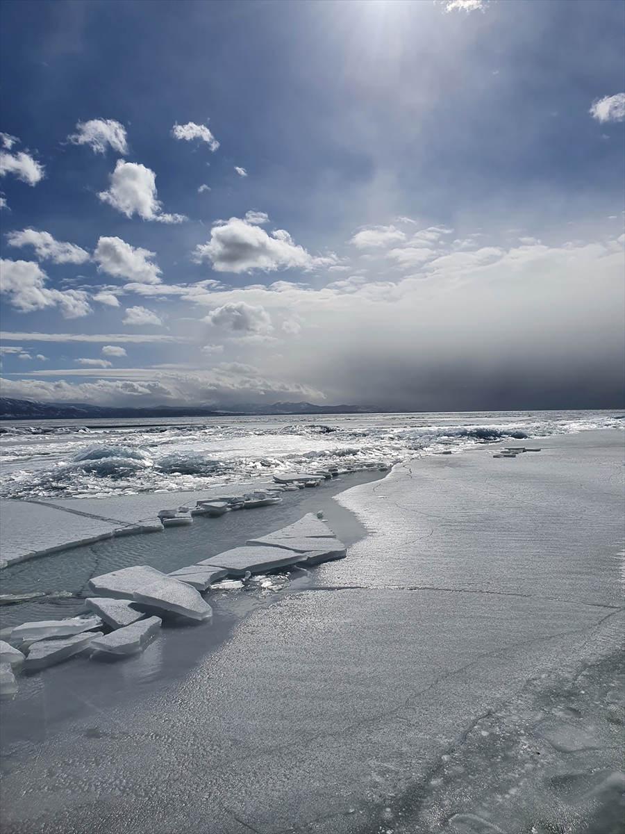 Lodosun sürüklediği buz parçaları ise göle kıyısı olan yerleşim merkezlerinden Akburun Mahallesi'nin sahilinde görenlerin ilgisini çeken kartpostallık manzaralar oluşturdu.
