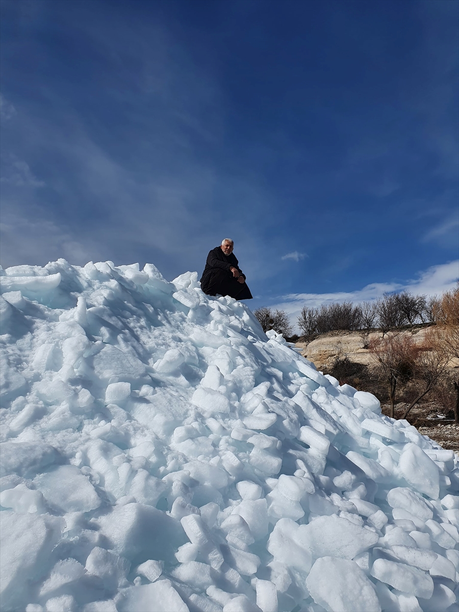 Mahalle sakinlerinden Erol Öksüz, gölde esen lodosun Akburun Mahallesi kıyısındaki Çetenin Burnu Mevkisinde karaya yığdığı buz kırıklarının en az 3 metrelik bir yükselti oluşturduğunu belirterek, uzun yıllardır böyle ilginç bir manzaraya tanıklık etmediklerini belirtti.