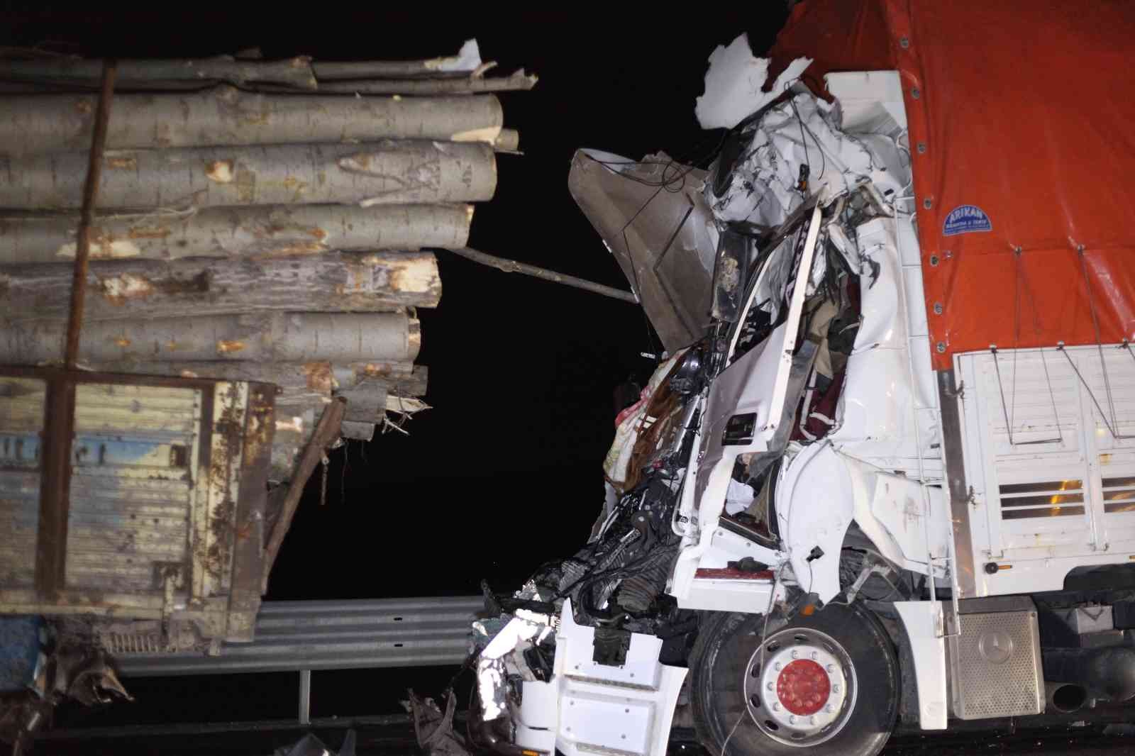 Konya’da akşam saatlerine feci bir kaza yaşandı. Kamyon, önünde seyreden tomruk yüklü kamyona arkadan çarptı. Araçta sıkışan 30 yaşındaki sürücü Kerim Edişmen, olay yerinde hayatını kaybetti.