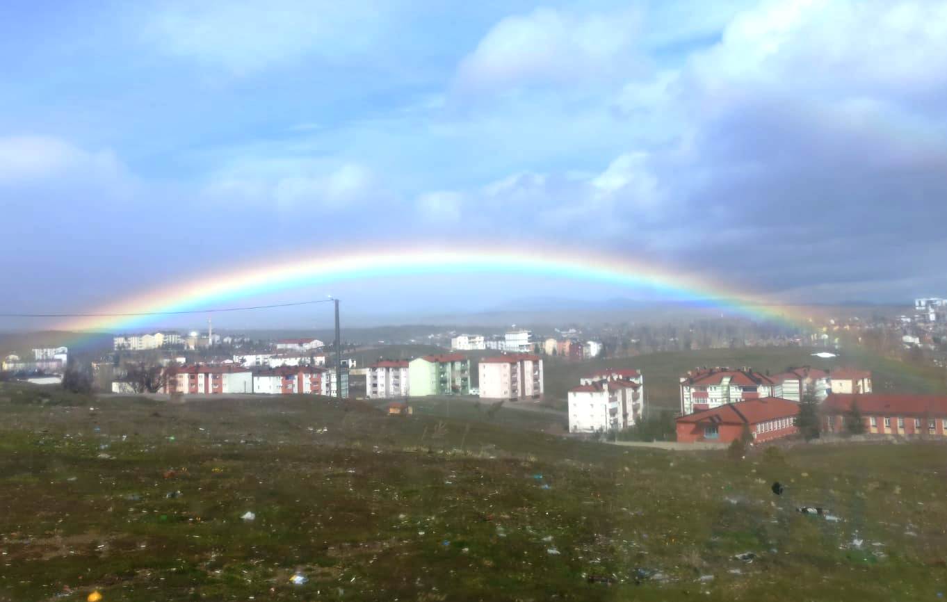 Özellikle Pınarbaşı Mahallesinden ve yüksek kesimlerden görülen gök kuşağı sonrası vatandaşlar bu eşsiz görüntüyü cep telefonu kameraları ile kaydettiler