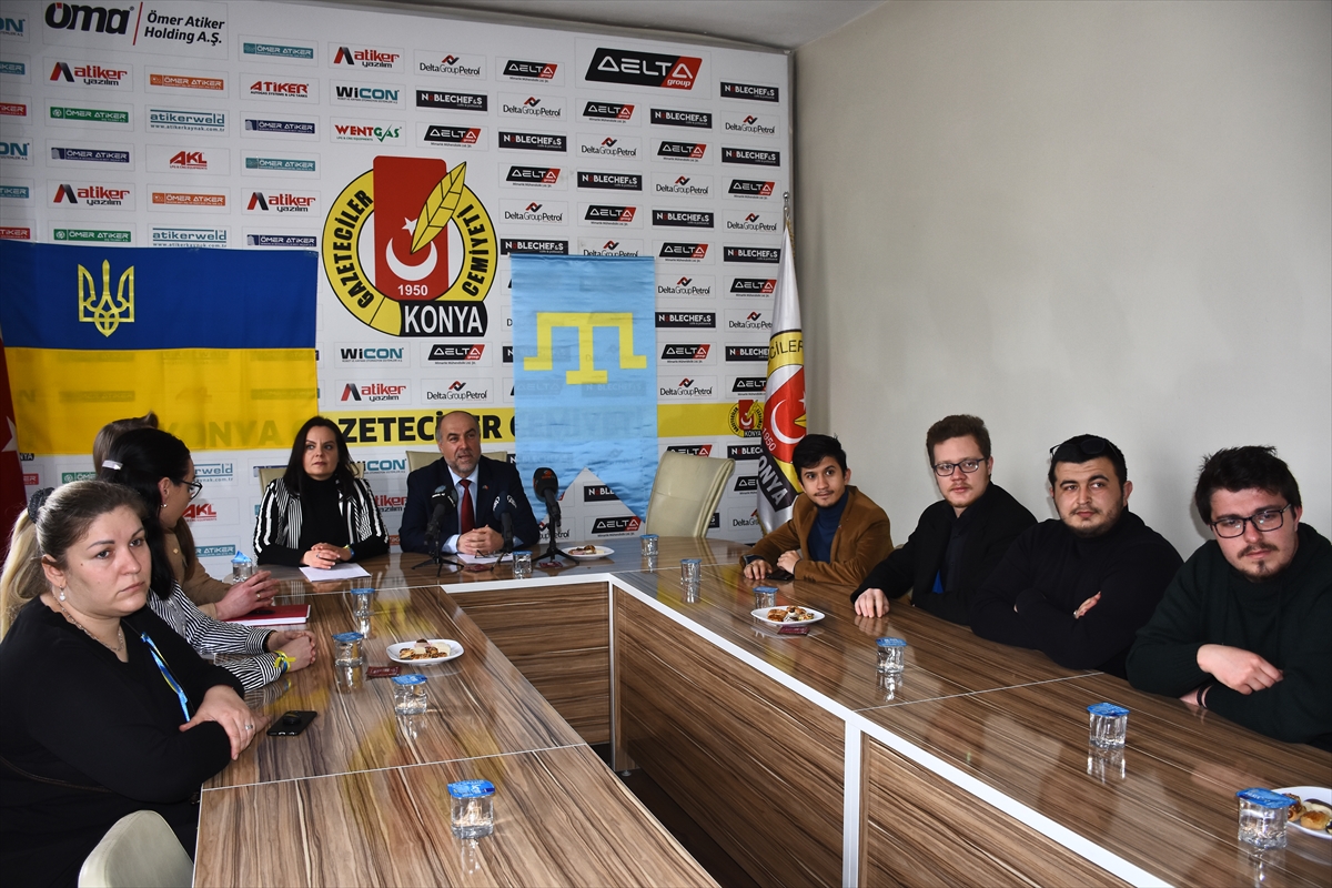 Konya Kırım Türkleri Dernek Başkanı Mustafa Sırrı Demirel, Konya Gazeteciler Cemiyeti'nde düzenlenen toplantıda, Rusya'nın Ukrayna'ya karşı açtığı savaşın altıncı günü olduğunu söyledi.