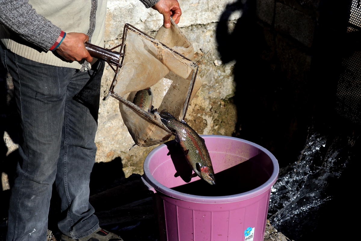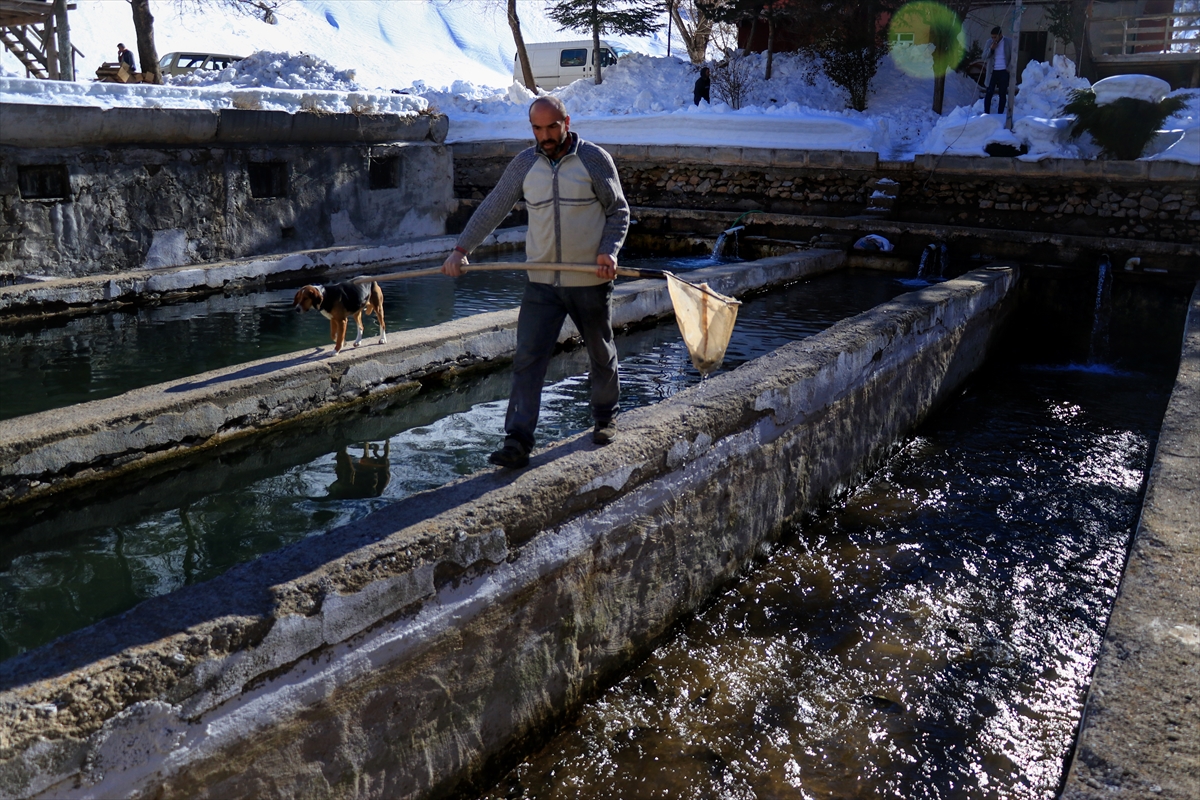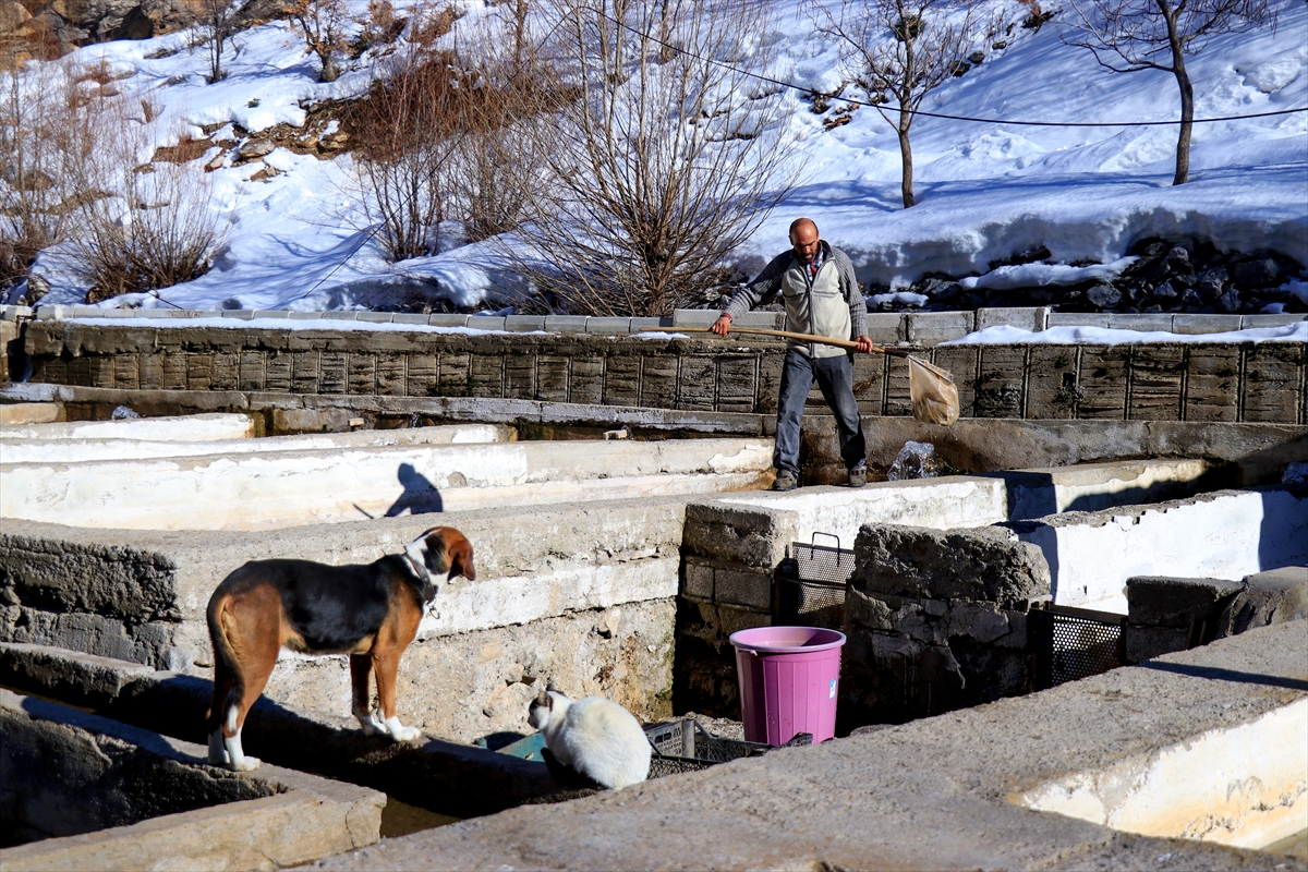 Balıkçı İsa Dikmen, AA muhabirine, tüm zorluklara rağmen yılın tamamını dağda havuzların bakımı ve balıkların beslenmesiyle geçirdiklerini söyledi.