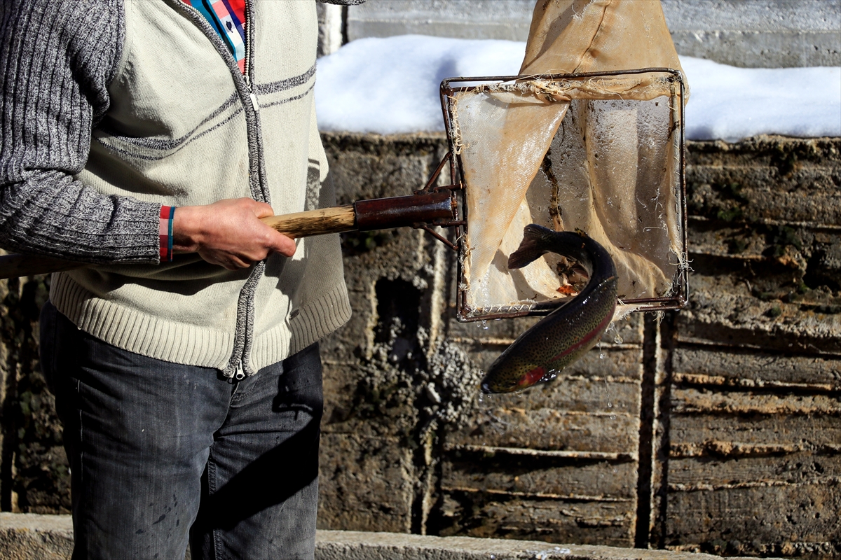 Kış aylarında kar kalınlığının 2-3 metrelere ulaştığı, hava sıcaklığının sıfırın altında 30'u gördüğü bölgede, kar sularıyla beslenen kaynaklarda yetiştirilen gökkuşağı alabalığı, lezzetiyle ön plana çıkıyor.